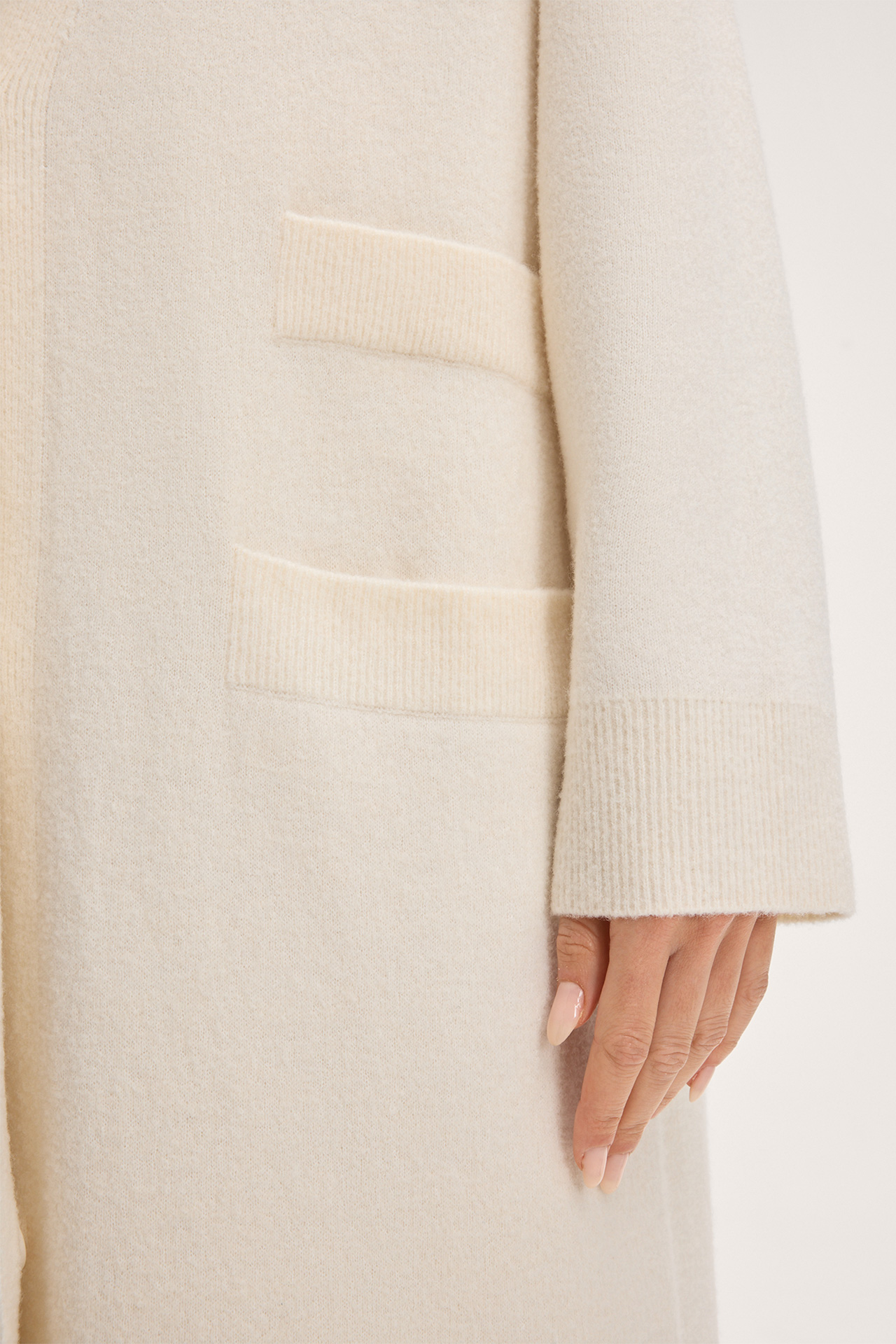 Double-Knit-Cardigan mit V-Ausschnitt in Creme