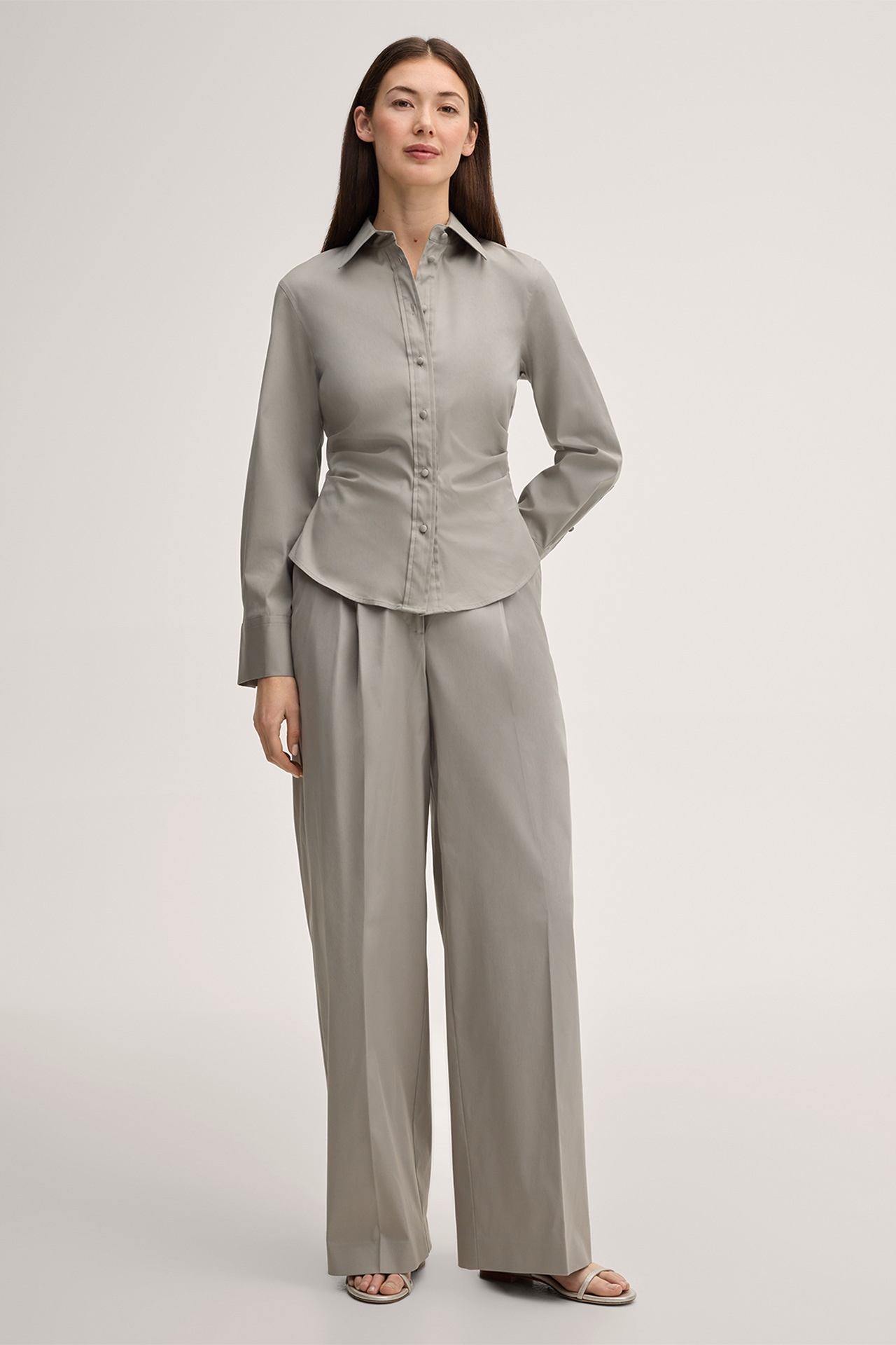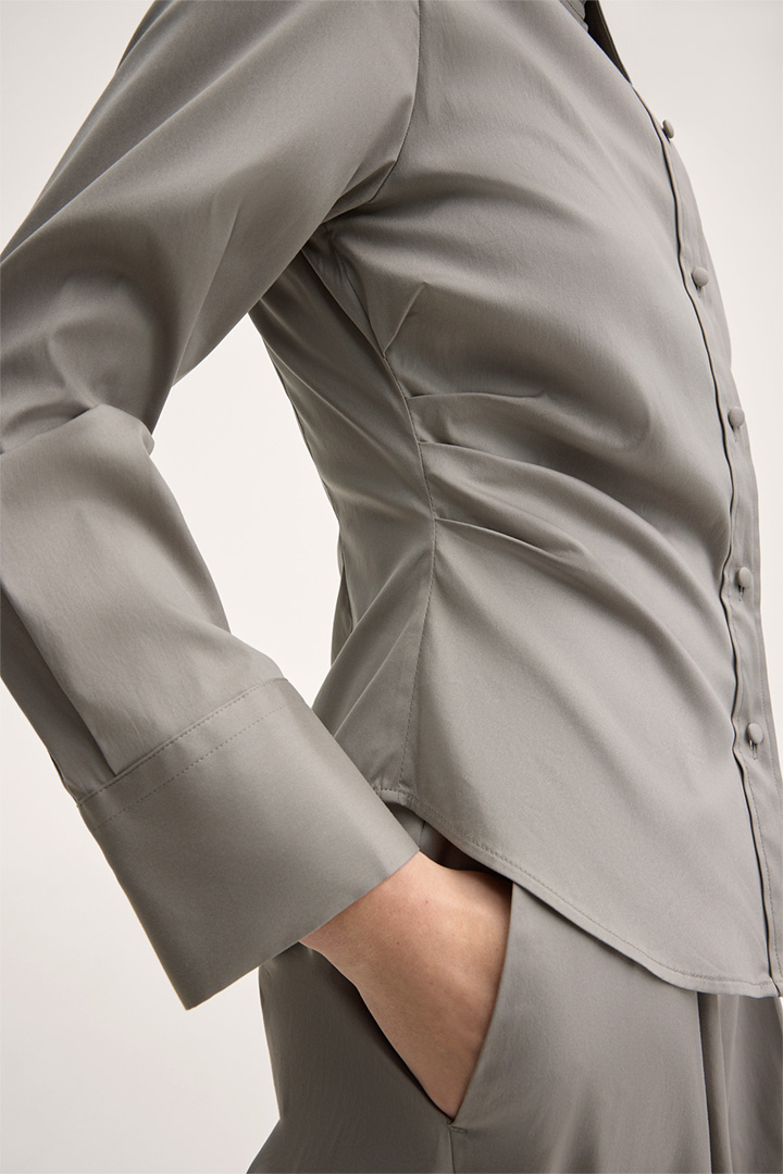 Cotton Stretch Shirt-style Blouse in Greige
