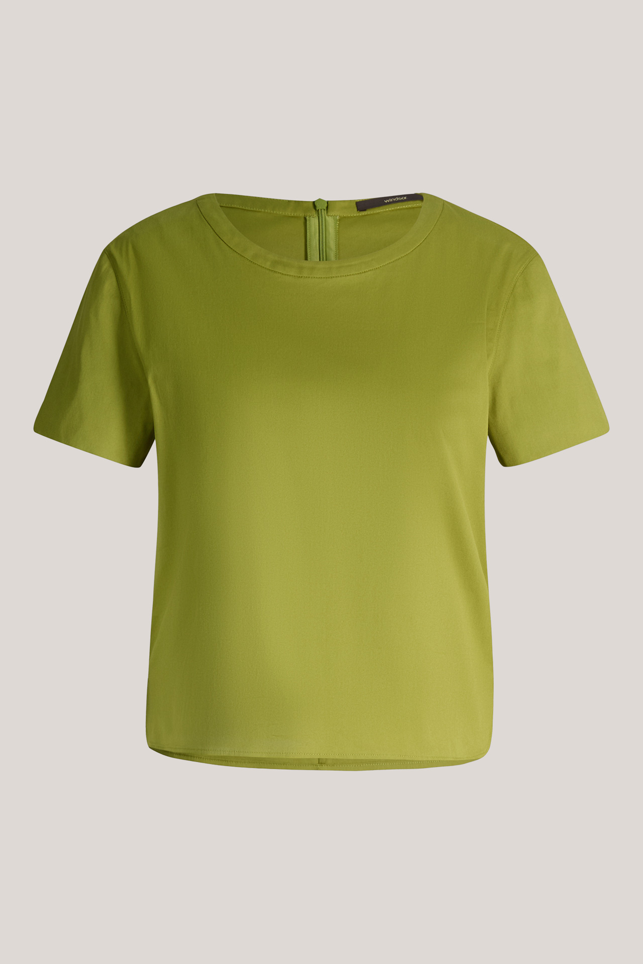This short-sleeved blouse is a real showstopper with its feminine round neck, classic short sleeves and zip fastening at the back. This essential lends a light, stylish touch to any outfit. The look is effortlessly chic and pairs perfectly with skirts and the latest trouser silhouettes, while also enhancing casual styles with jeans. The stretch cotton poplin fabric feels super comfy to wear.
