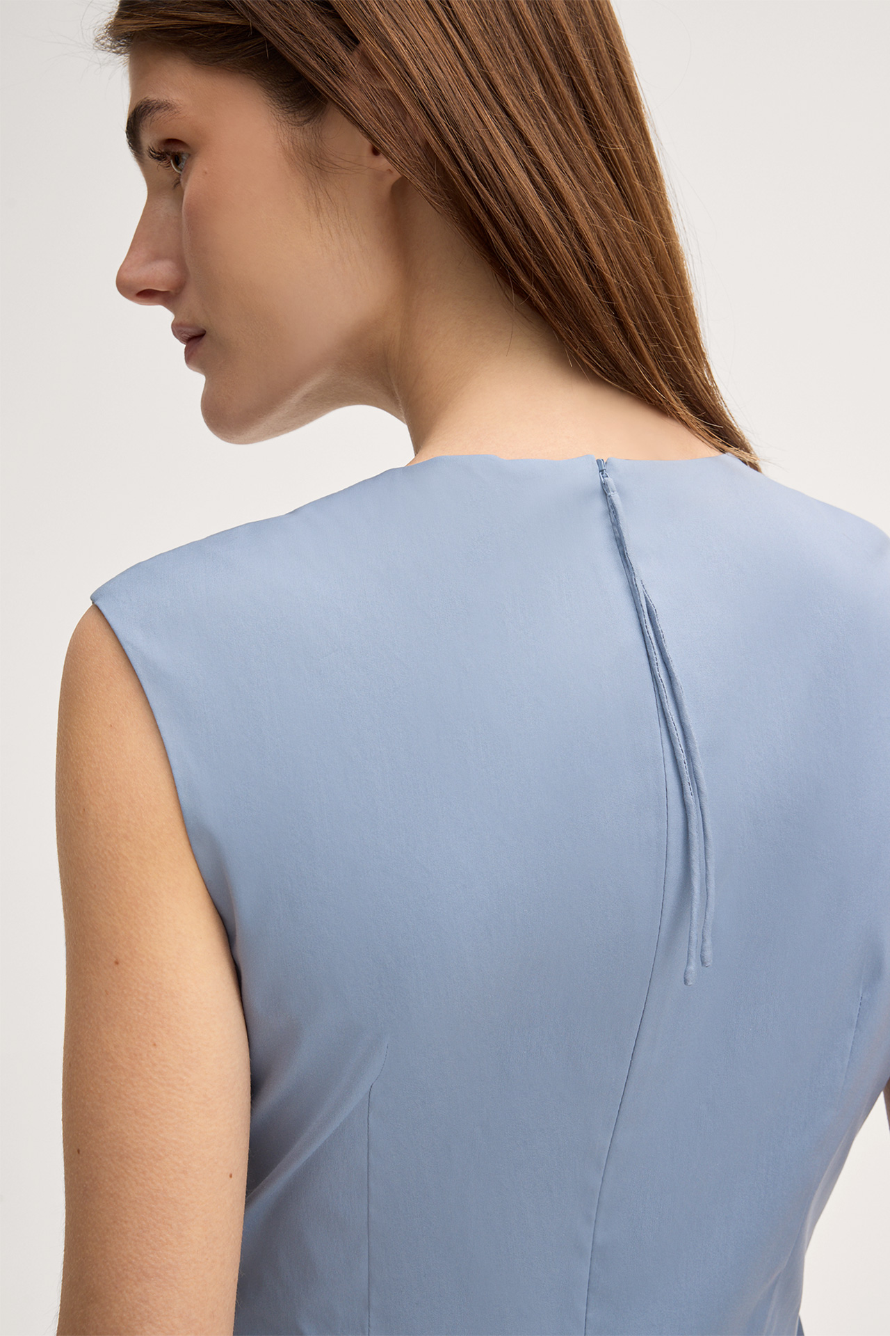 Midi-length stretch cotton shift dress in light blue