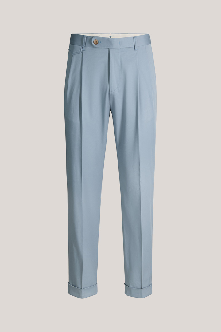 Sapo cotton blend modular trousers with a pleat on the waistband in light blue