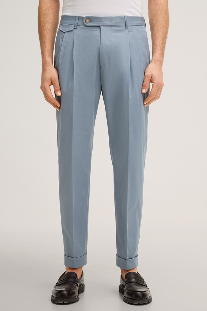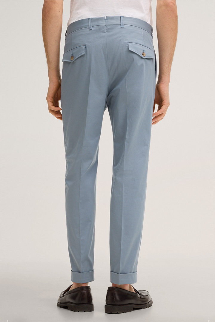 The Sapo trousers are out to impress as a classic piece for casual wear and the office, thanks to their stylish design featuring waist pleats and pressed creases. Side slit pockets and the button and zip fastening enhance the design, complemented by the small coin pocket with flap. The stretchy cotton quality offers optimum comfort.