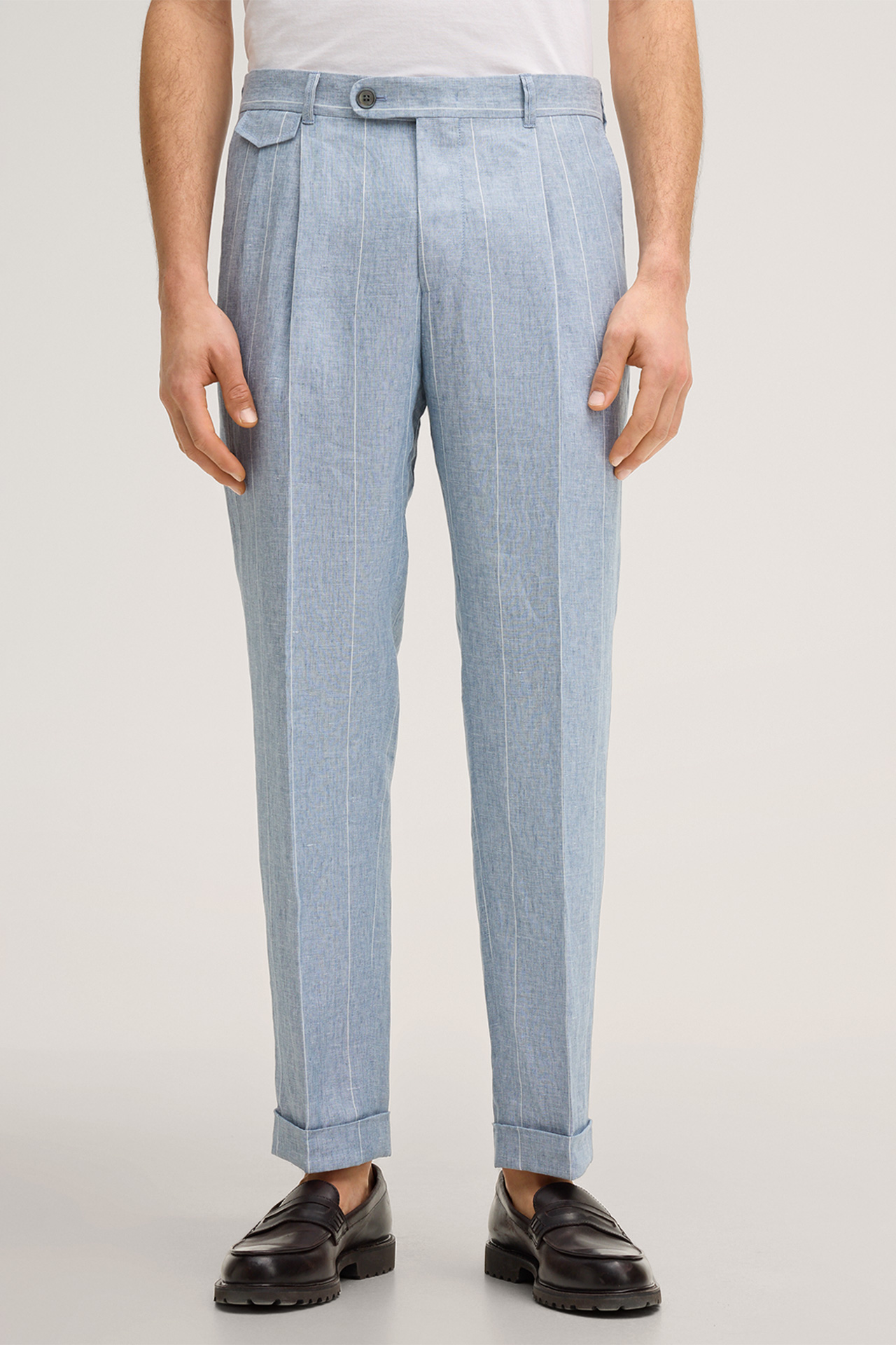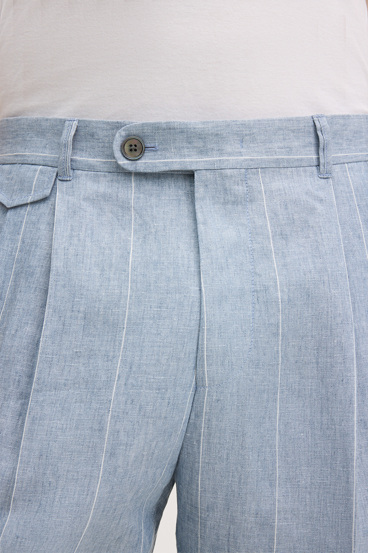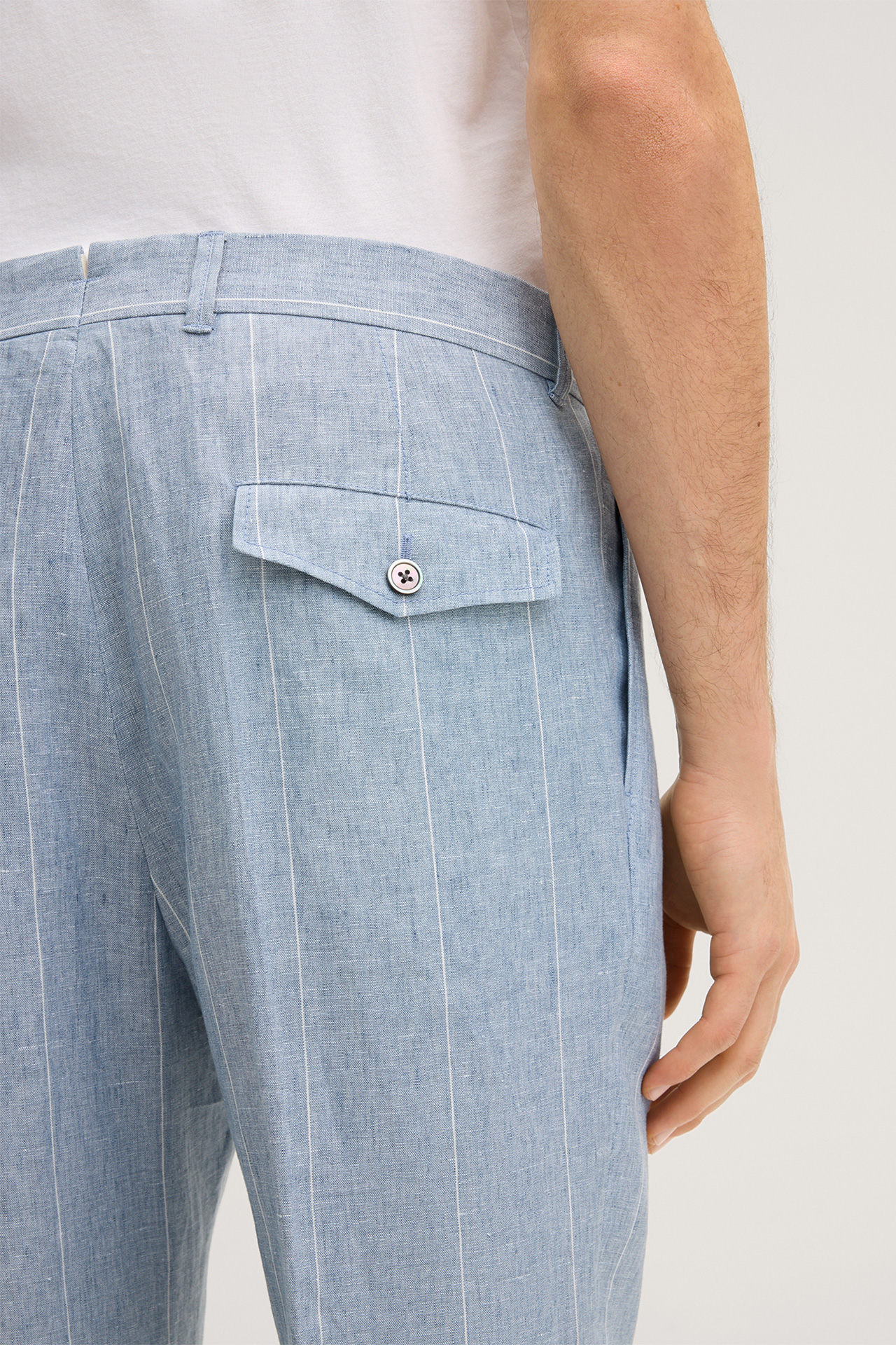 Sapo linen modular trousers with pleat on the waistband in blue with pinstripes