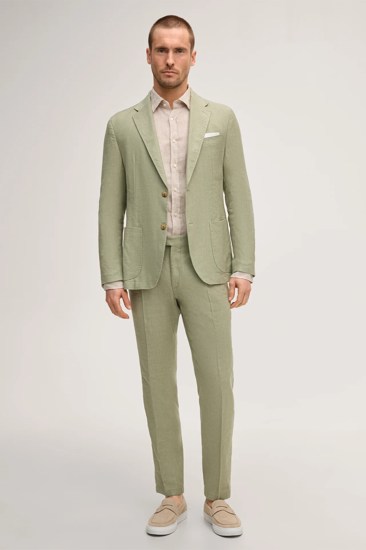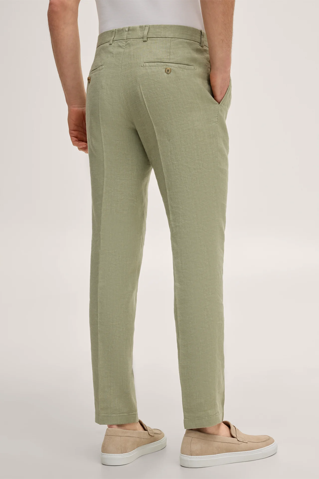 Silvi stretch linen modular trousers with pleats in light green