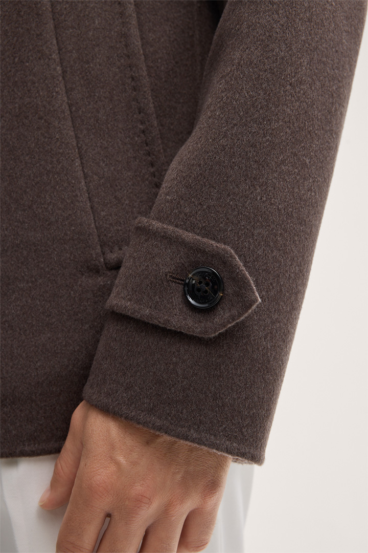 In a double-face wool finish, the Doppio Caban jacket excels as a stylish all-rounder. Distinctive buttons, the lapel collar and side slit pockets create this smart look. Modern tab details on the cuffs add accents.
