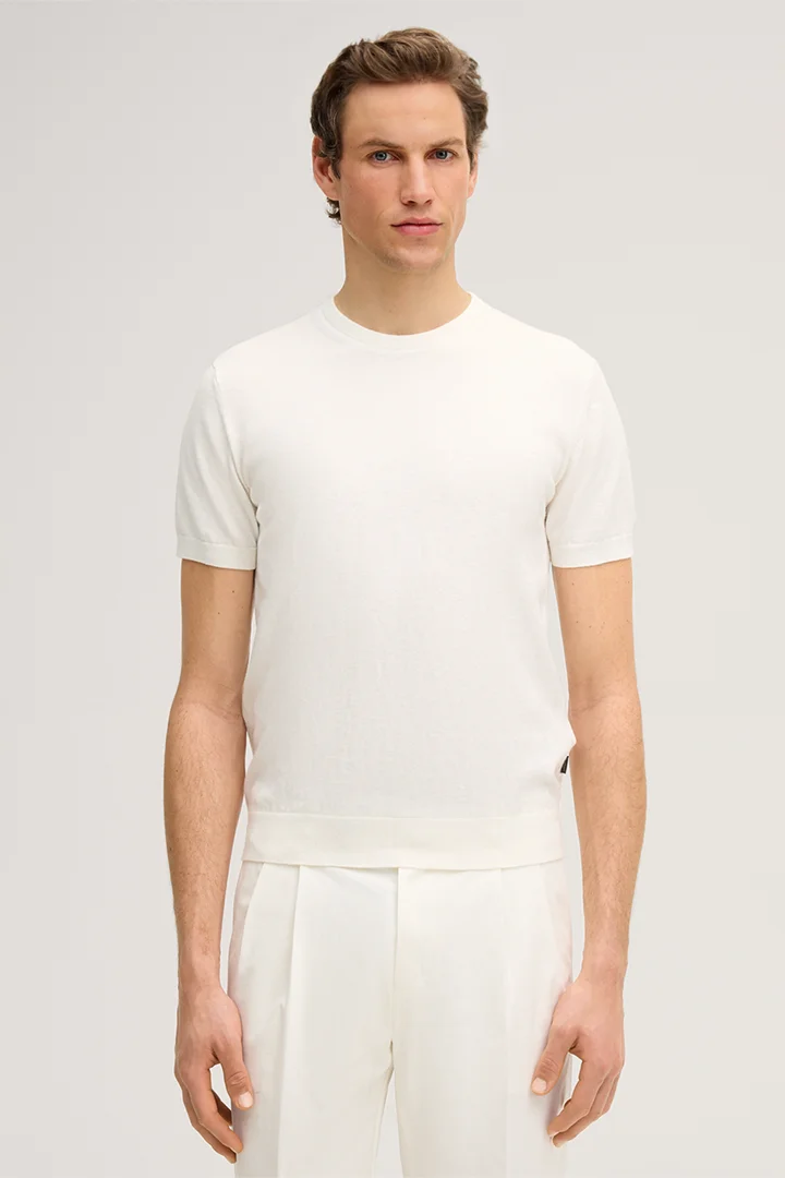The Cashmilo short-sleeved shirt in a stylish knitted design made from a high-quality cotton blend with cashmere and silk excels as a versatile all-rounder, perfect with classic suit trousers, chinos or jeans and loafers. The round neck and finely ribbed cuffs give this essential a harmonious finish.