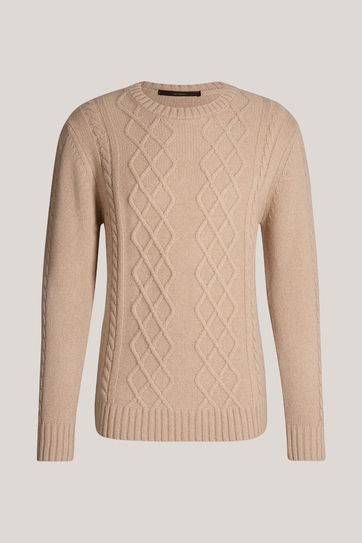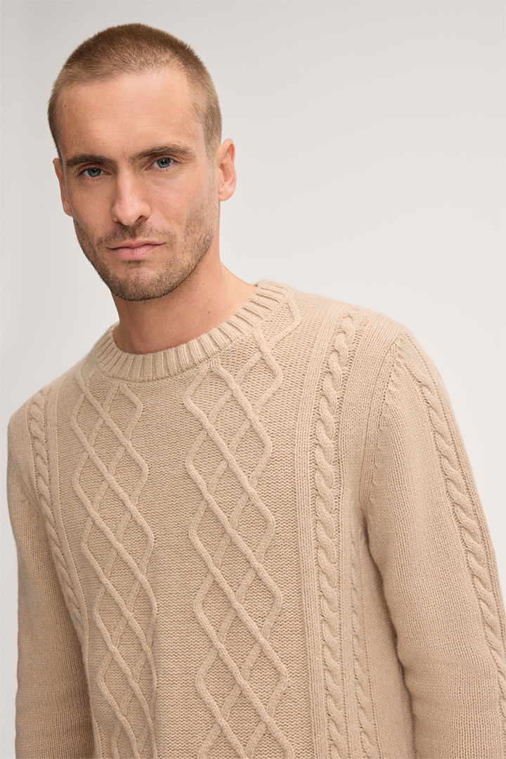 The Ecosio jumper, made from a cashmere blend, is a comfortable style with a modern twist thanks to its cable knit pattern. The classic round neck and ribbed cuffs on the sleeves and hem enhance the design.