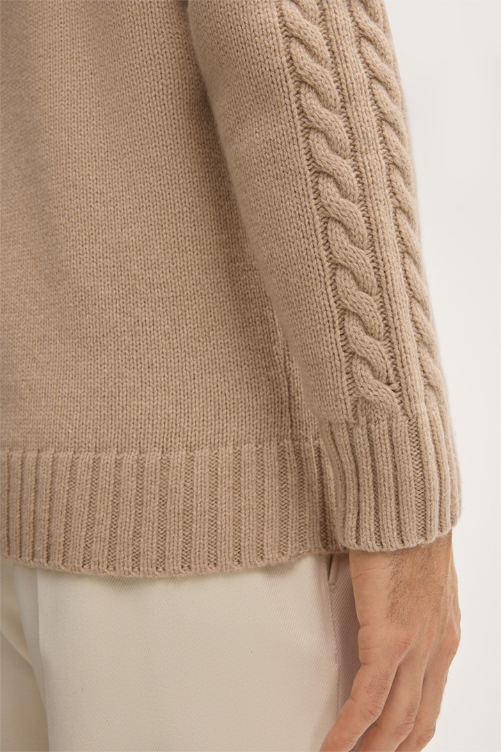 Ecosio Cable-knit Cashmere Pullover in Beige