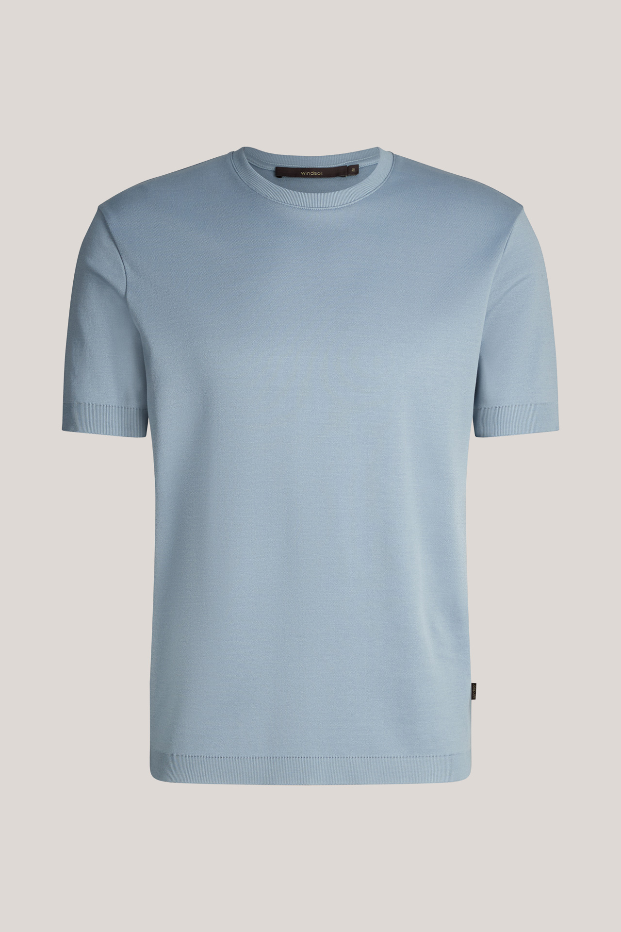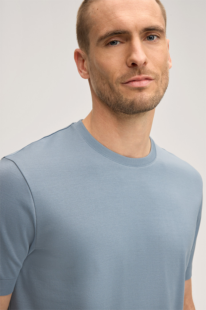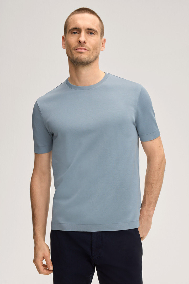 The Floro T-shirt is made from textured cotton and features a classic round neckline and modern ribbed cuffs and hem. The subtle logo flag adds a touch of the label's signature style.