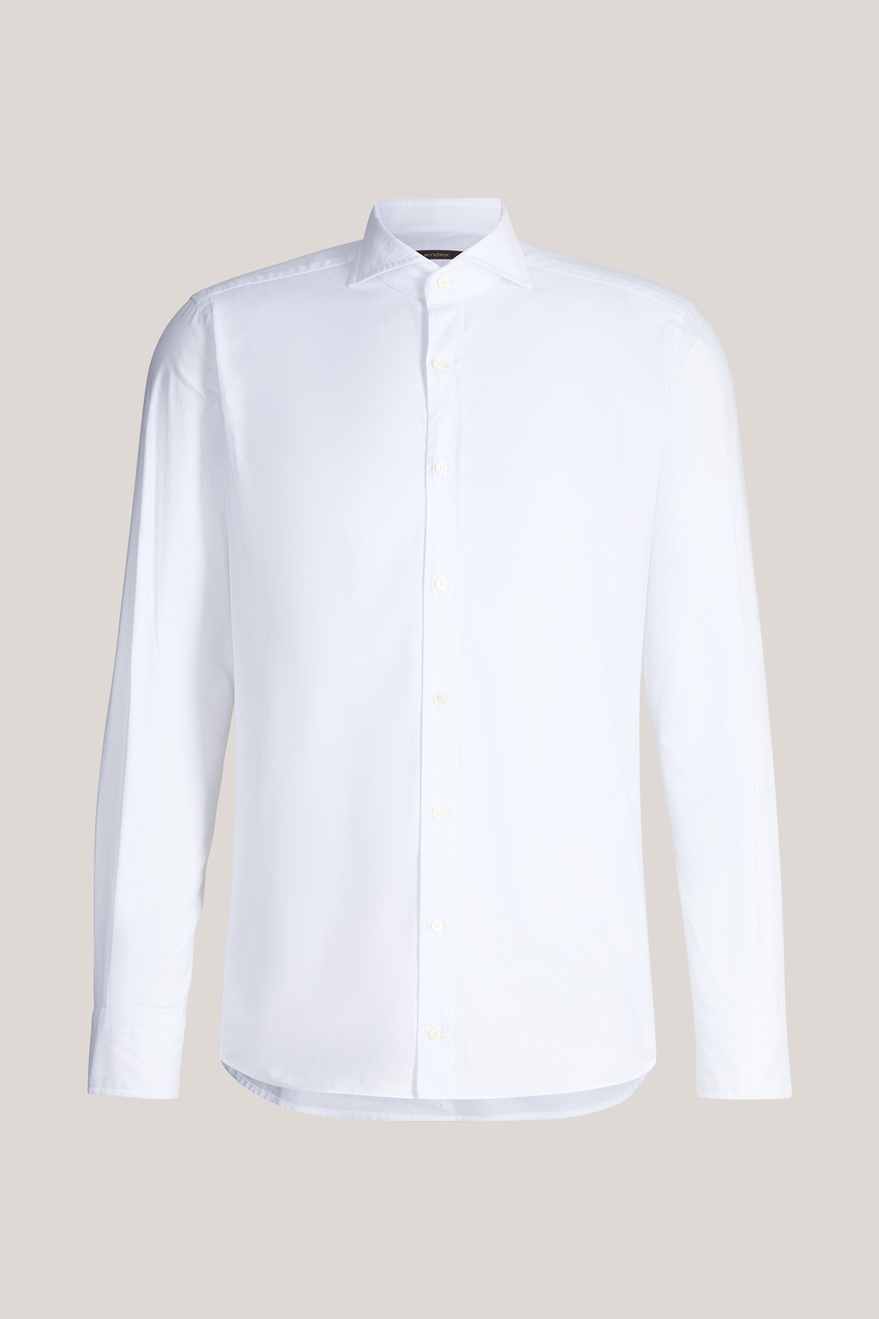 The windsor. Lano business shirt in pure white has a smart SHAPED FIT and is made of luxurious Italian cotton. Style and class are reflected in the modern cutaway collar and the inset button placket with distinguished buttons. The narrow rear yoke with its shape-enhancing seams and cuffs with cut-out details create the format for slim fit suits. A subtle windsor. ‘W’ emblem rounds off the design. This refined shirt gives a stylish character to every look. Why not add the matching breast pocket handkerchief for the finishing touch?