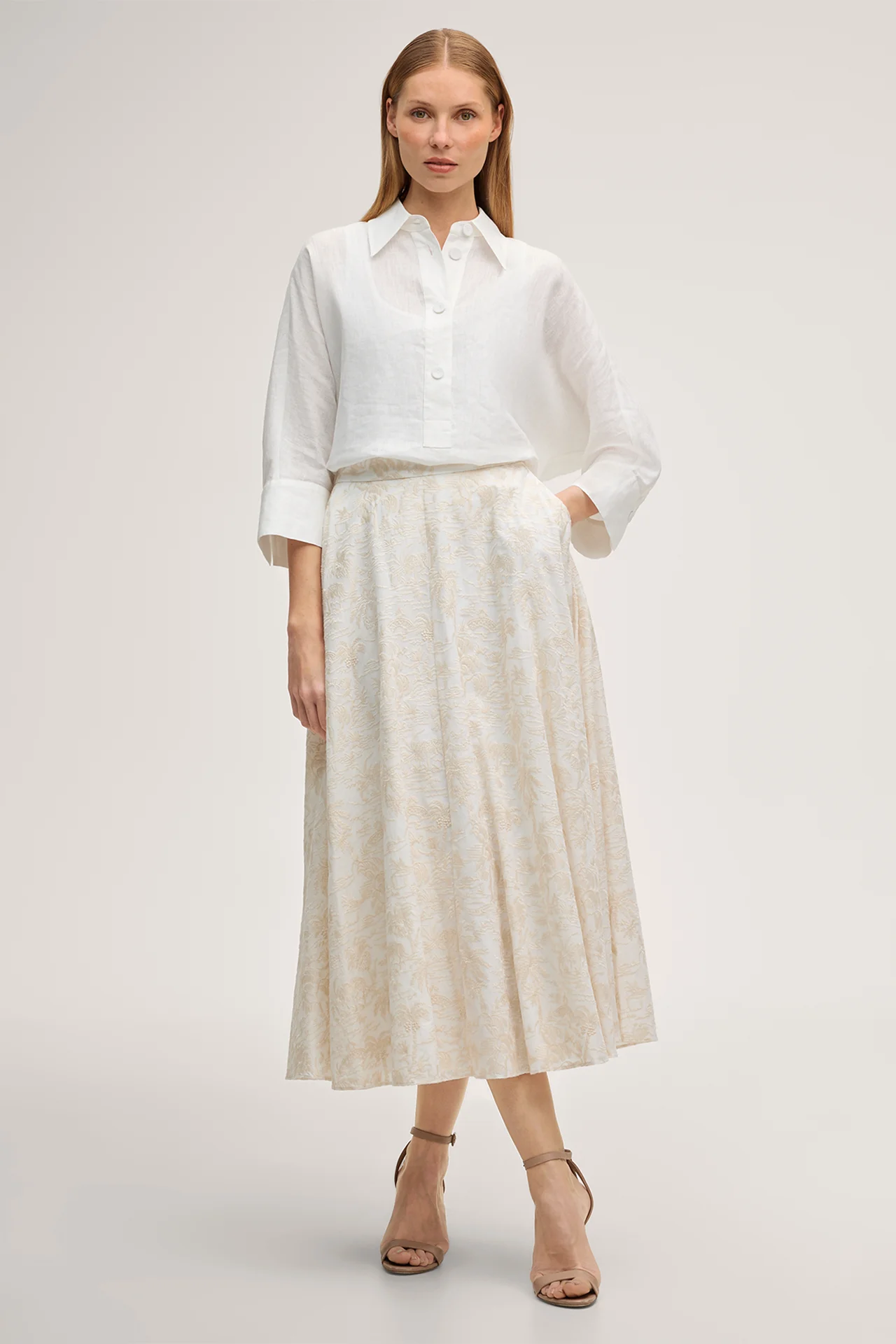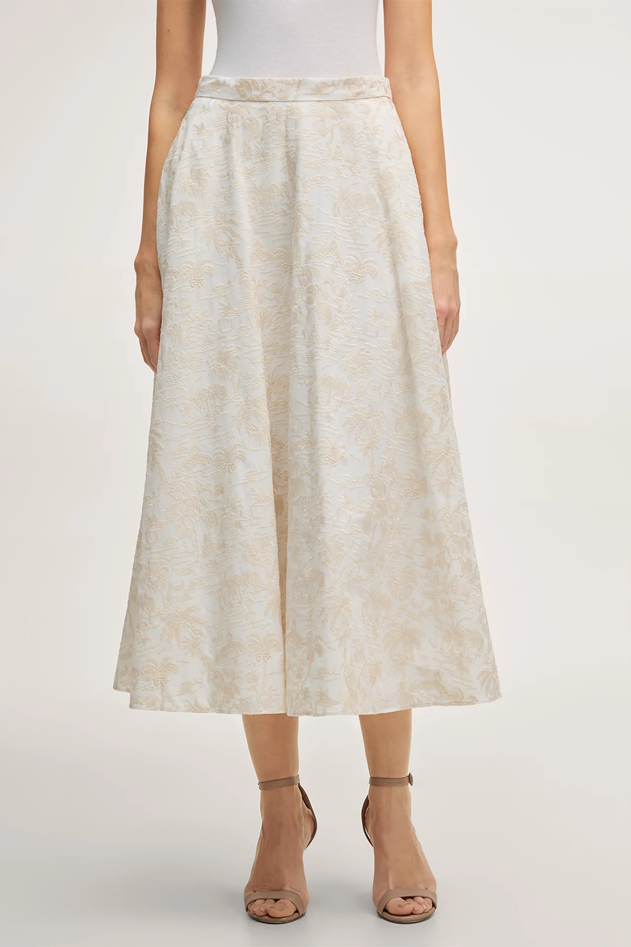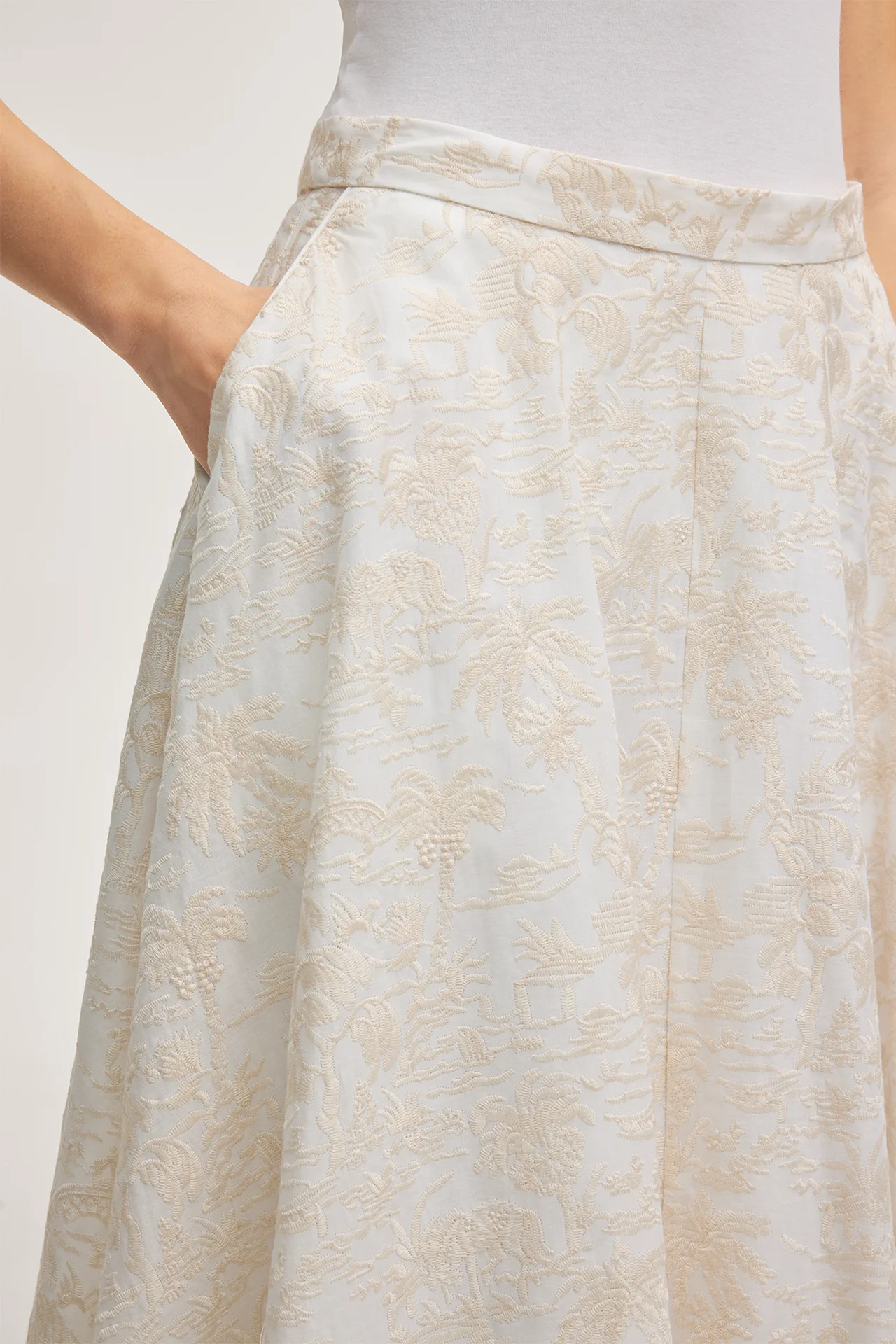 Cotton blend midi skirt in ecru