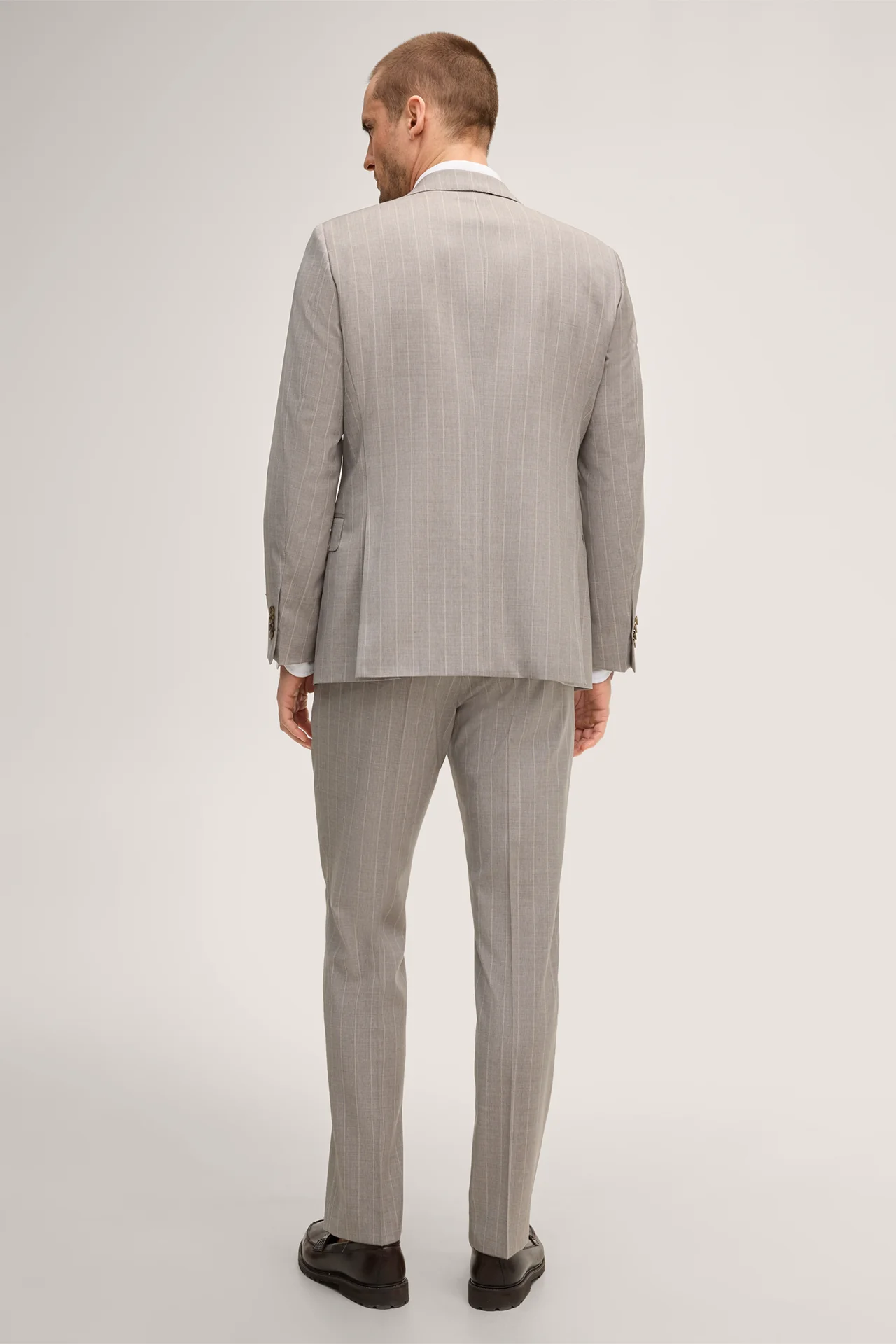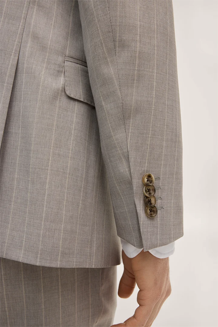 Sera-Sole virgin wool suit in grey and brown stripes