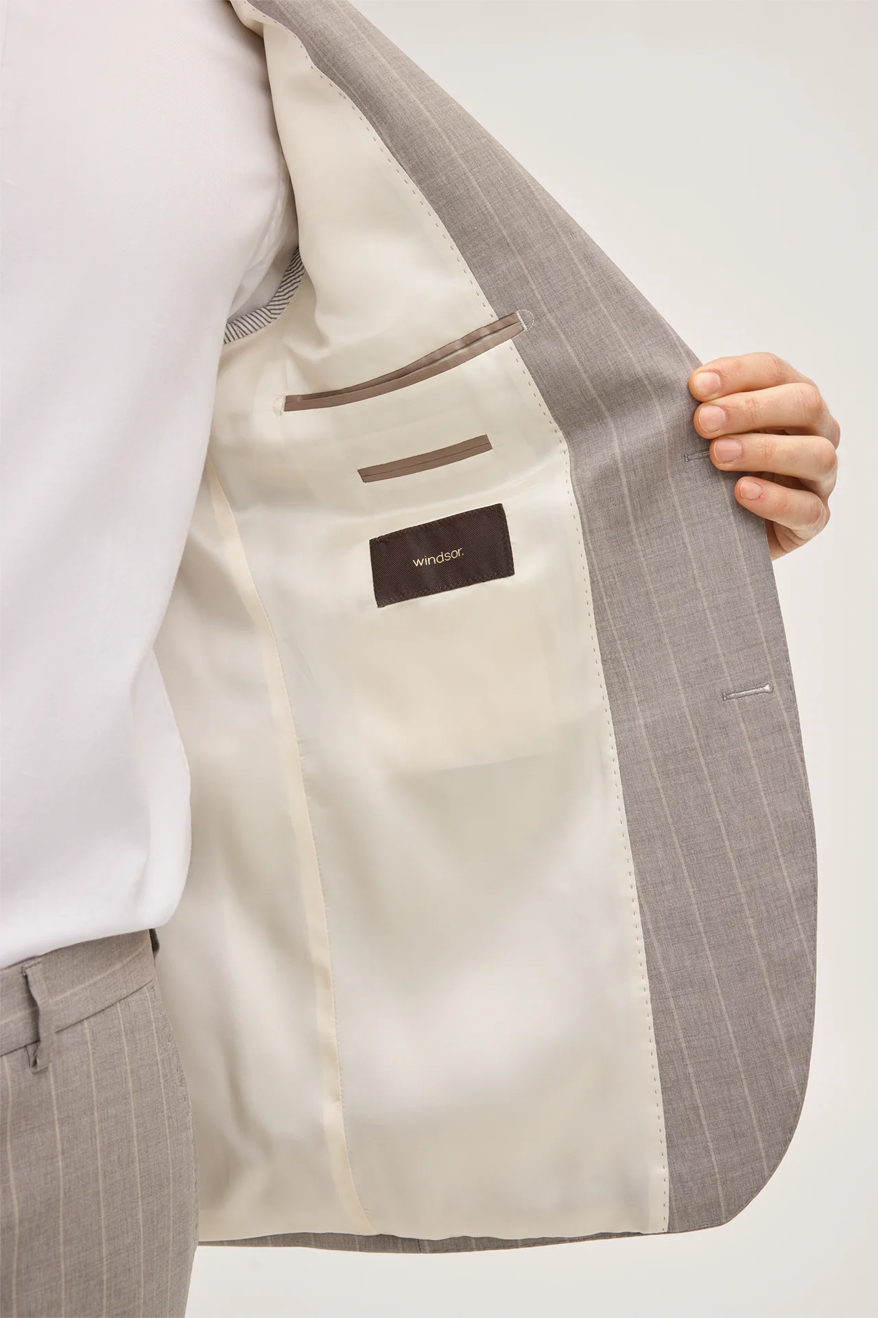 windsor. presents the product Sera-Sole virgin wool suit in grey and brown stripes from the category Suits