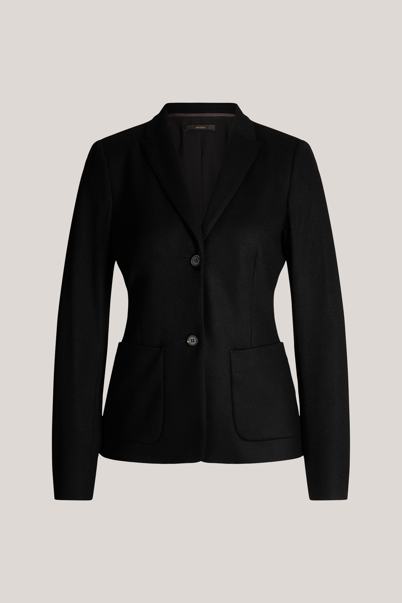This wool jersey blazer in black from windsor. is made of pure wool with a lightweight finish – it’s smart in a classic look and makes for an elegant suit when worn with the matching trousers. The SLIM FIT creates a feminine silhouette, while the peak lapel adds a classic accent. Patch pockets round off the look in a modern way. The stylish details such as melange buttons and cuffs with a narrow slit refine the design.