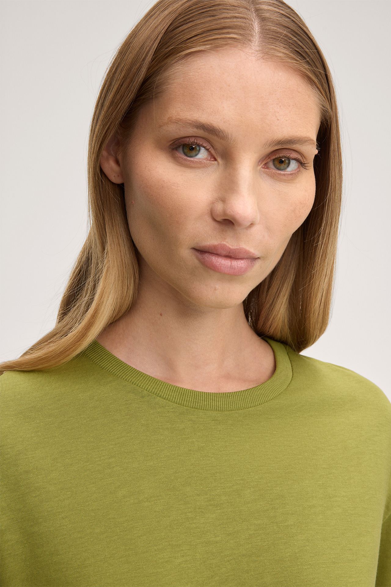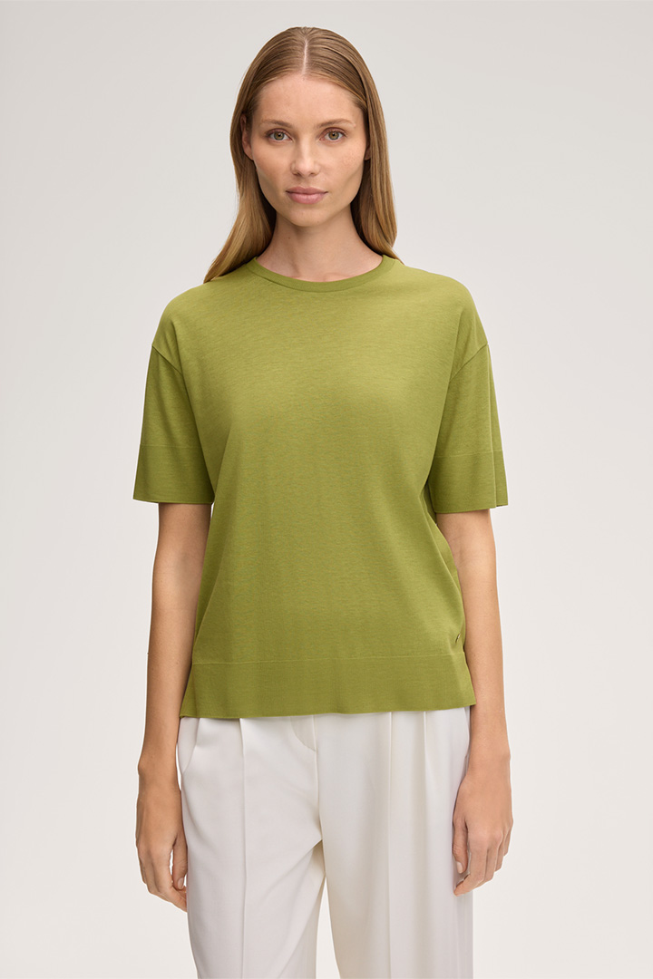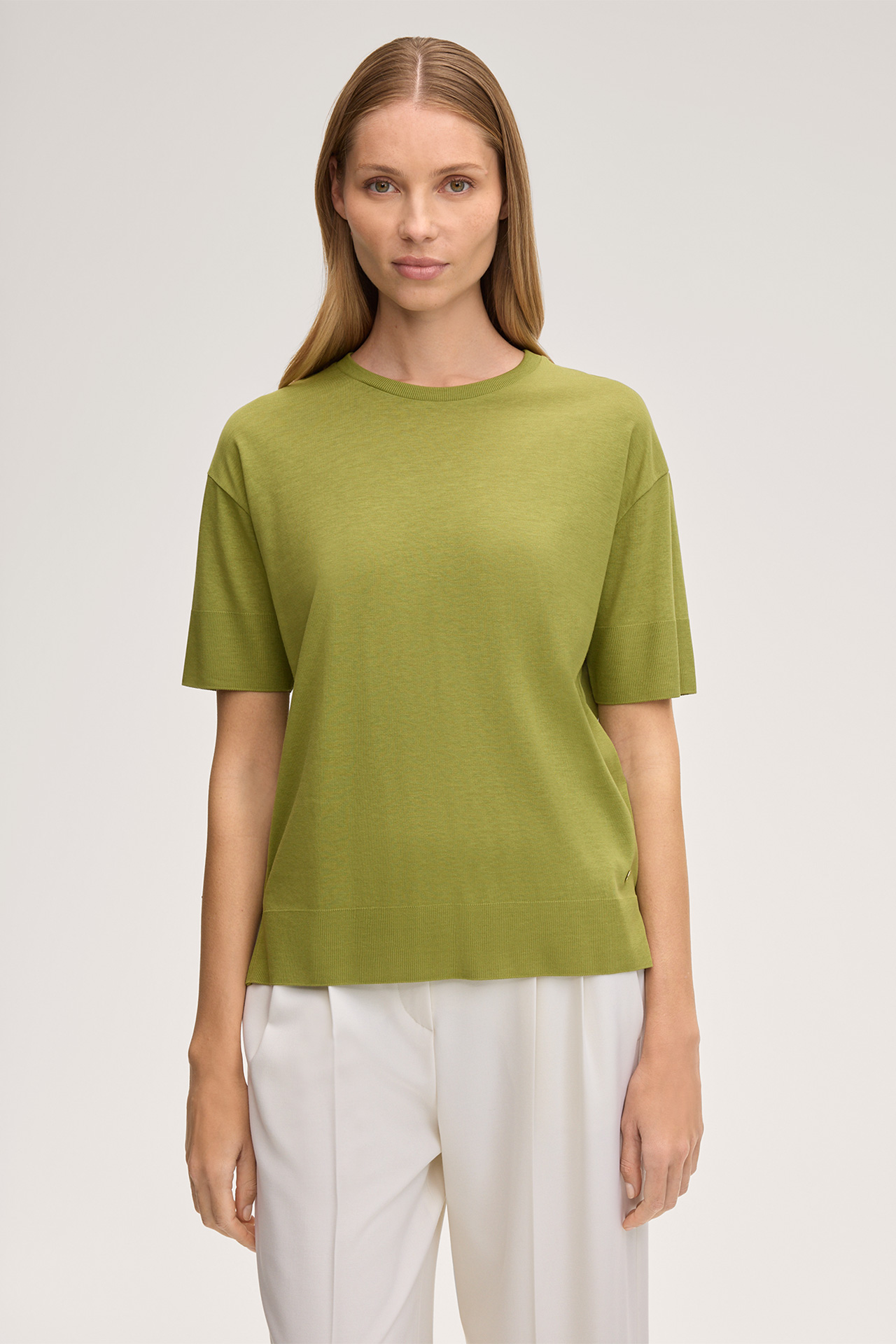 In a flowing cotton blend, this T-shirt is a great all-rounder for different outfits - classically complemented by a round neckline. Short sleeves with ribbed cuffs and a slit hem at the side add a modern finish.