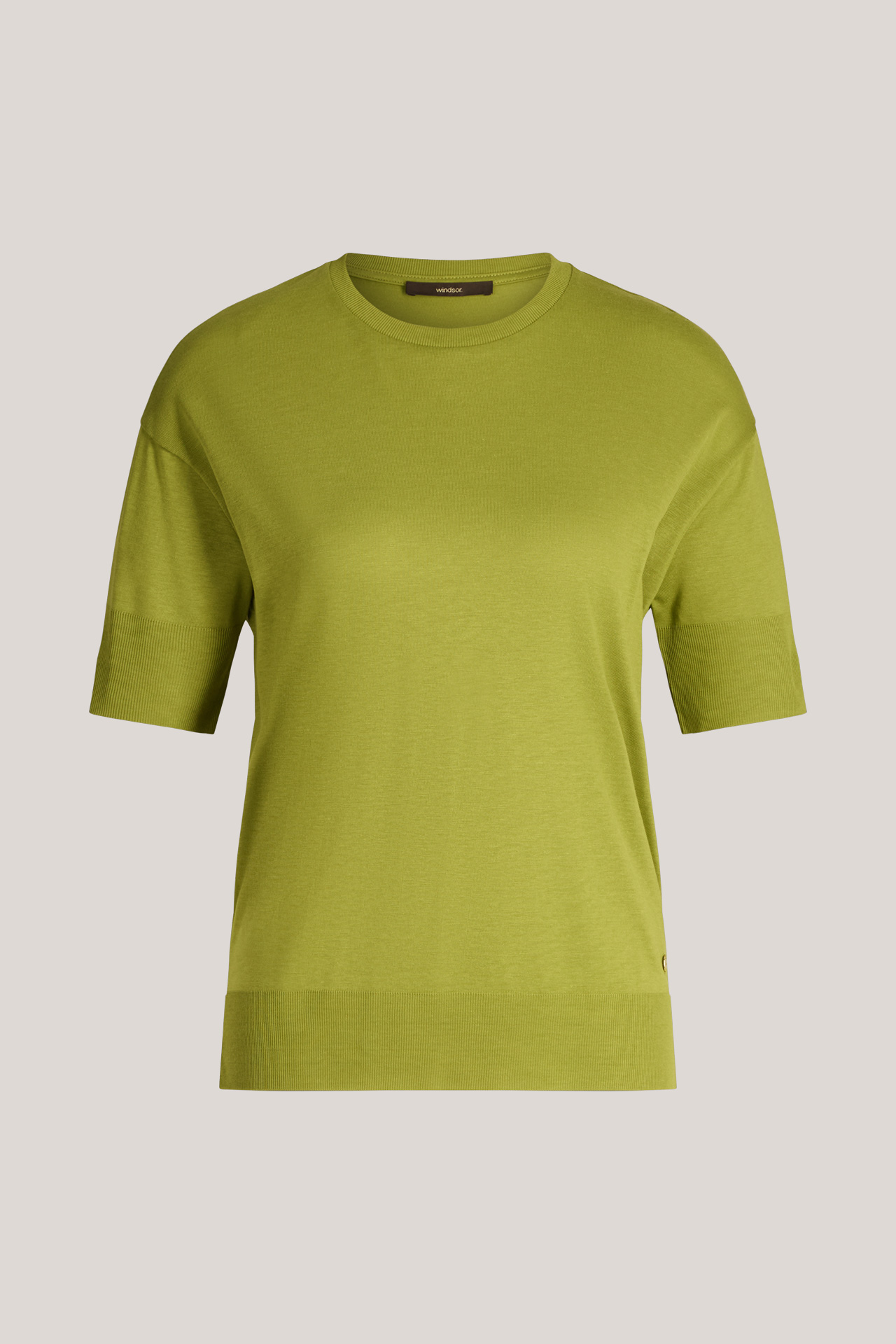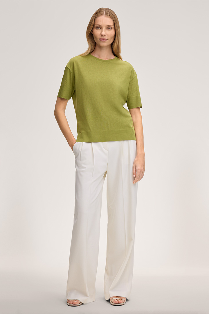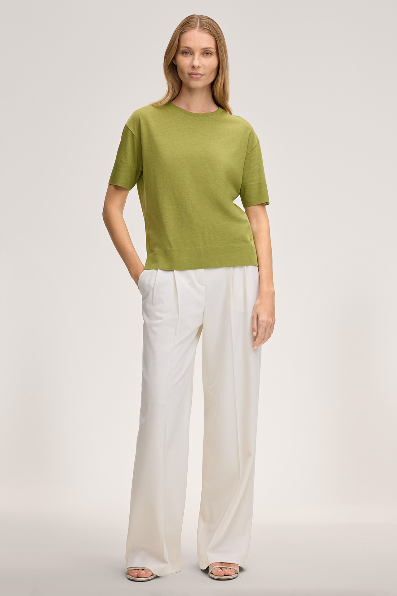 In a flowing cotton blend, this T-shirt is a great all-rounder for different outfits - classically complemented by a round neckline. Short sleeves with ribbed cuffs and a slit hem at the side add a modern finish.