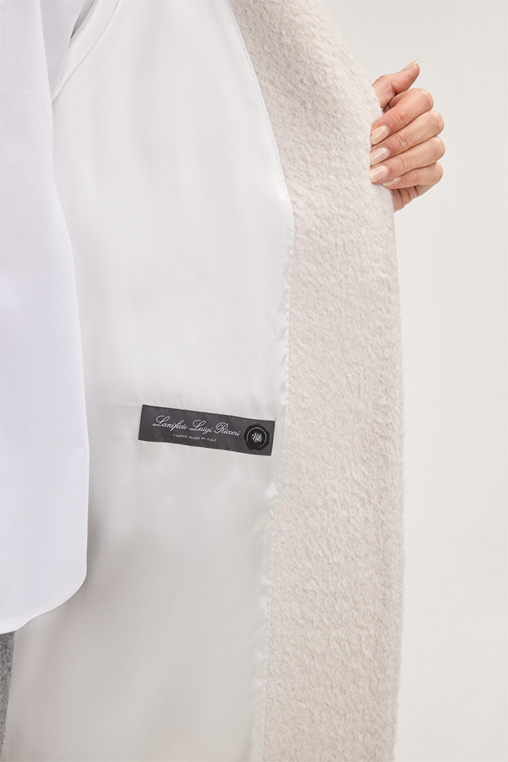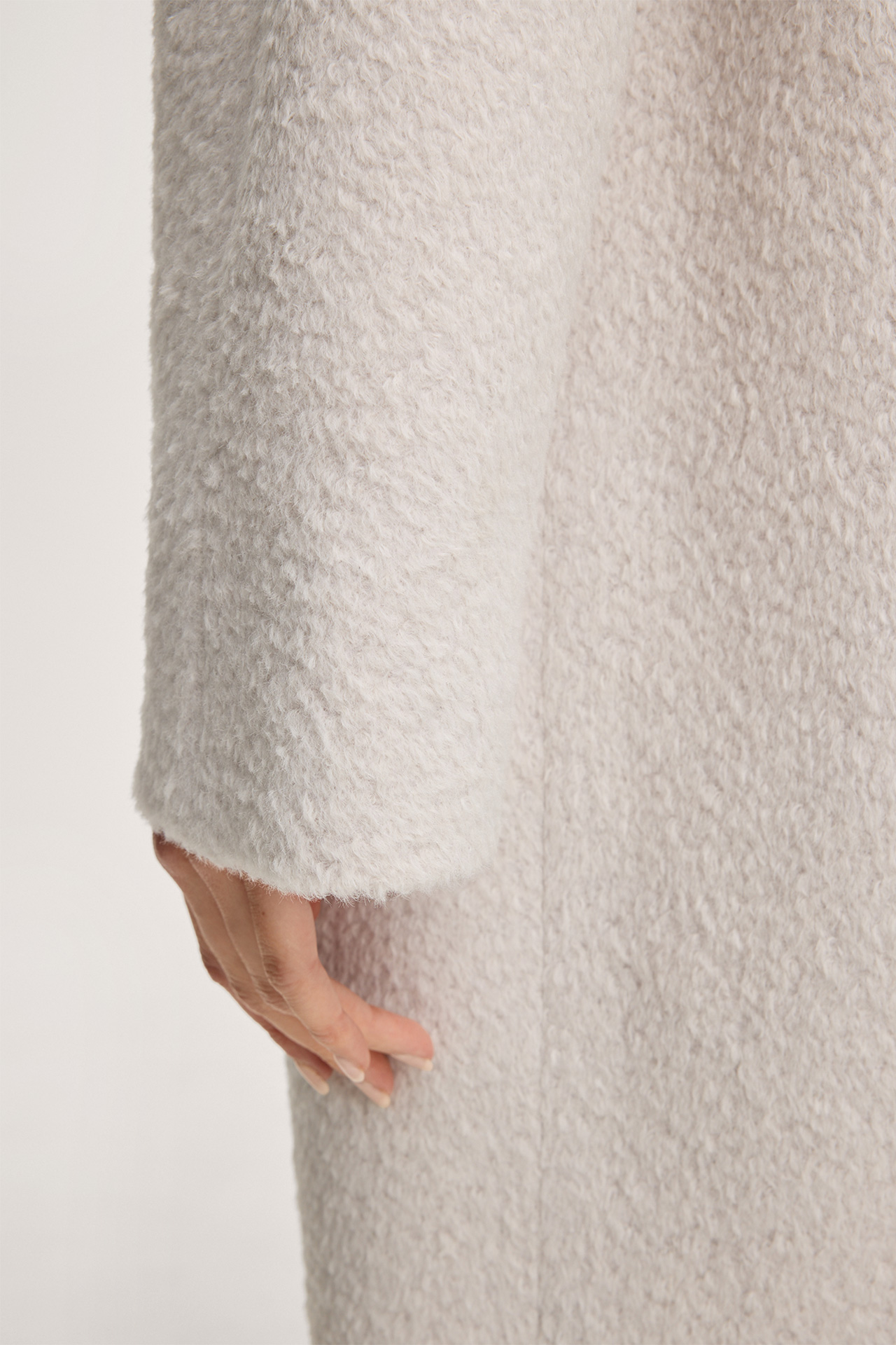 The slightly egg-shaped silhouette lends this city coat a casual twist. The brushed quality in an alpaca and wool blend adds a touch of luxurious flair. The lapel turn-down collar, classic long sleeves and elegant button fastening complement the stylish design. Side slit pockets ensure a stylish finish.