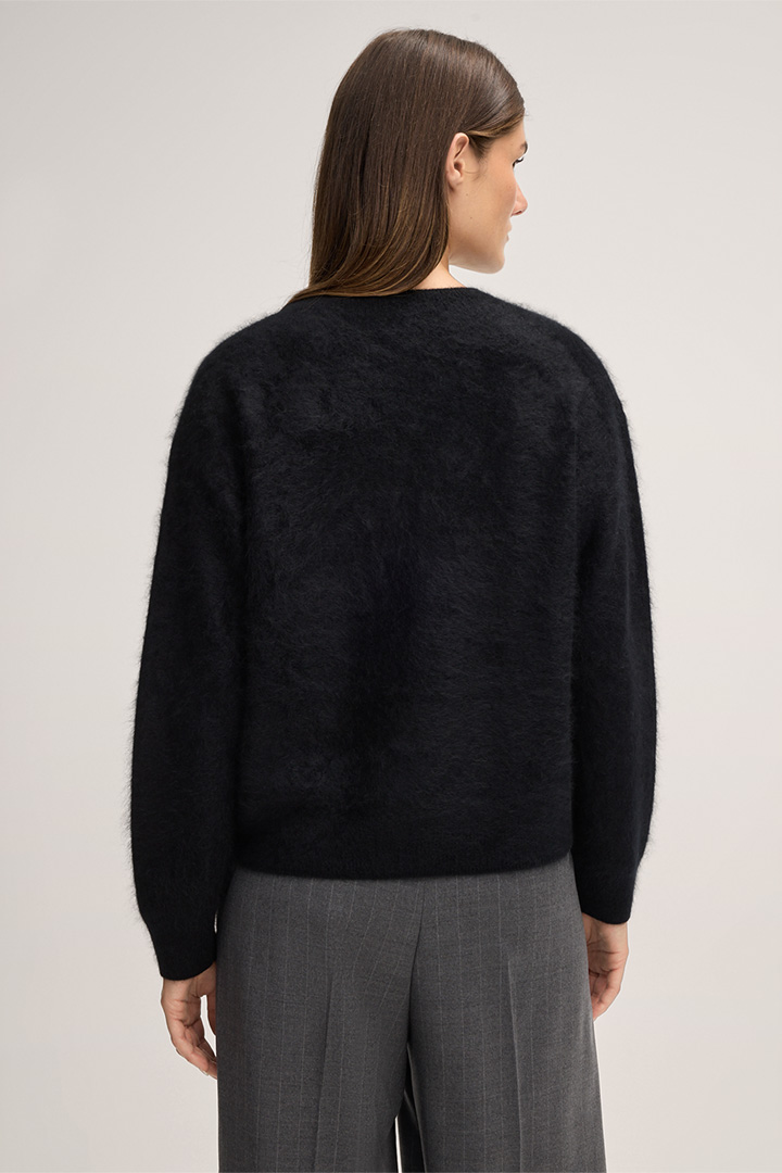 Round Neck Pullover in Brushed Cashmere in Black