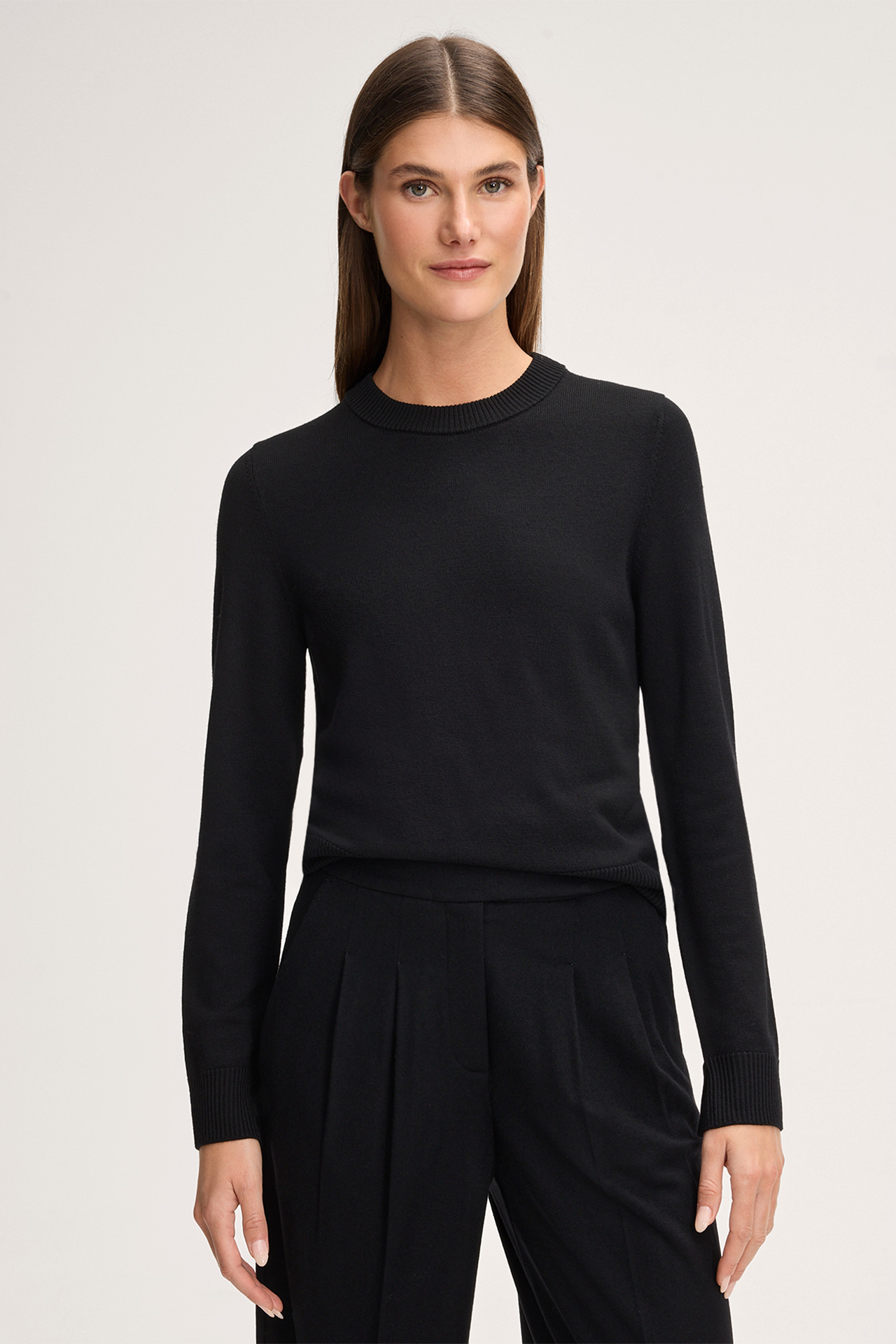 This fine knit pullover in pure virgin wool excels as a stylish all-rounder. The design boasts a feminine round neck, classic long sleeves and modern ribbed cuffs - a key look for a variety of outfits.