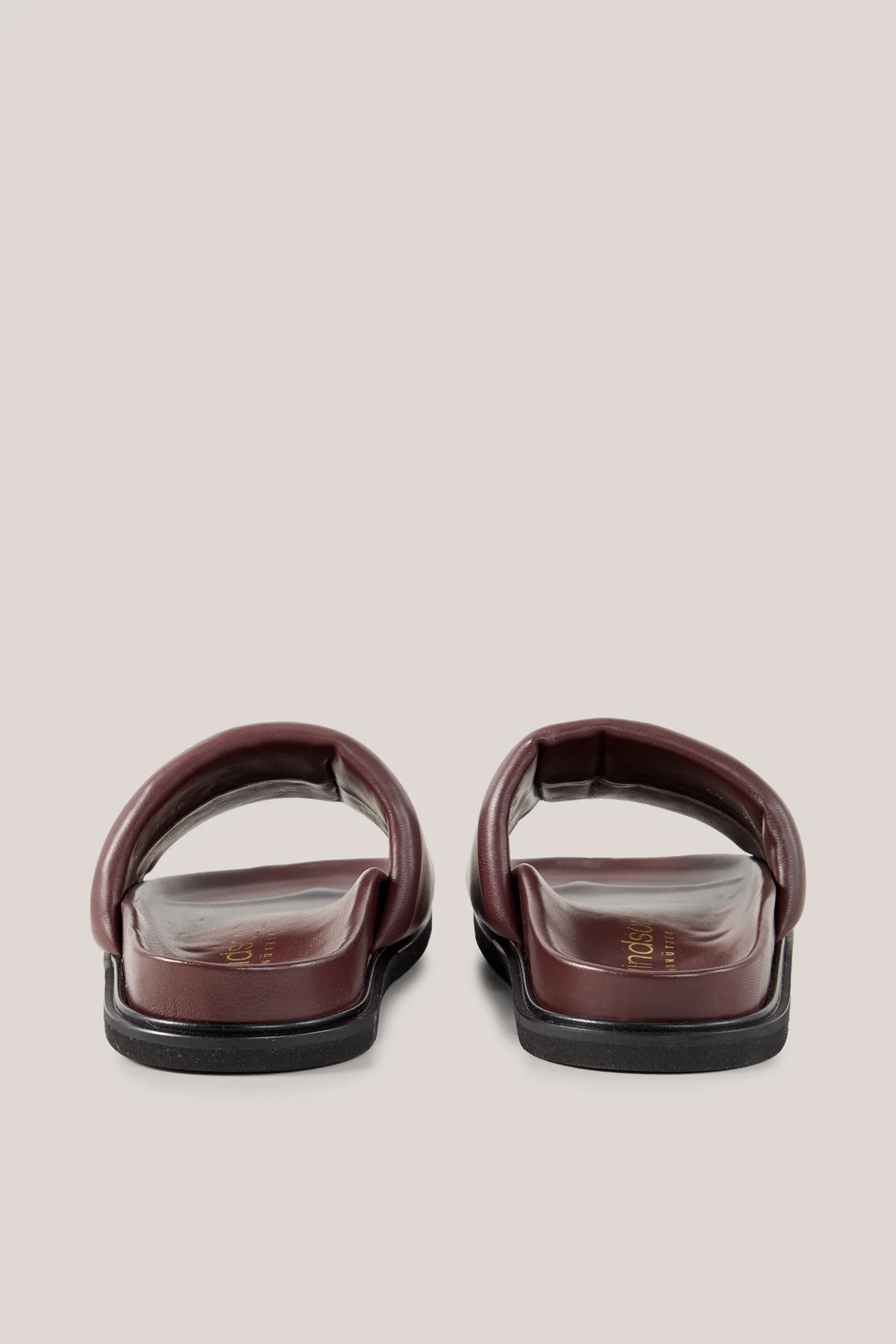 With their stylish slip-on design, these slides made from pure lamb nappa leather are a favorite for sophisticated summer looks. The style goes well with light linen trousers, short chino shorts and Bermuda shorts, and is a must-have for the warmer months. The wide leather strap and subtle logo embossing give the style an exquisite touch. The ergonomic footbed and the functional rubberised outsole ensure excellent comfort.