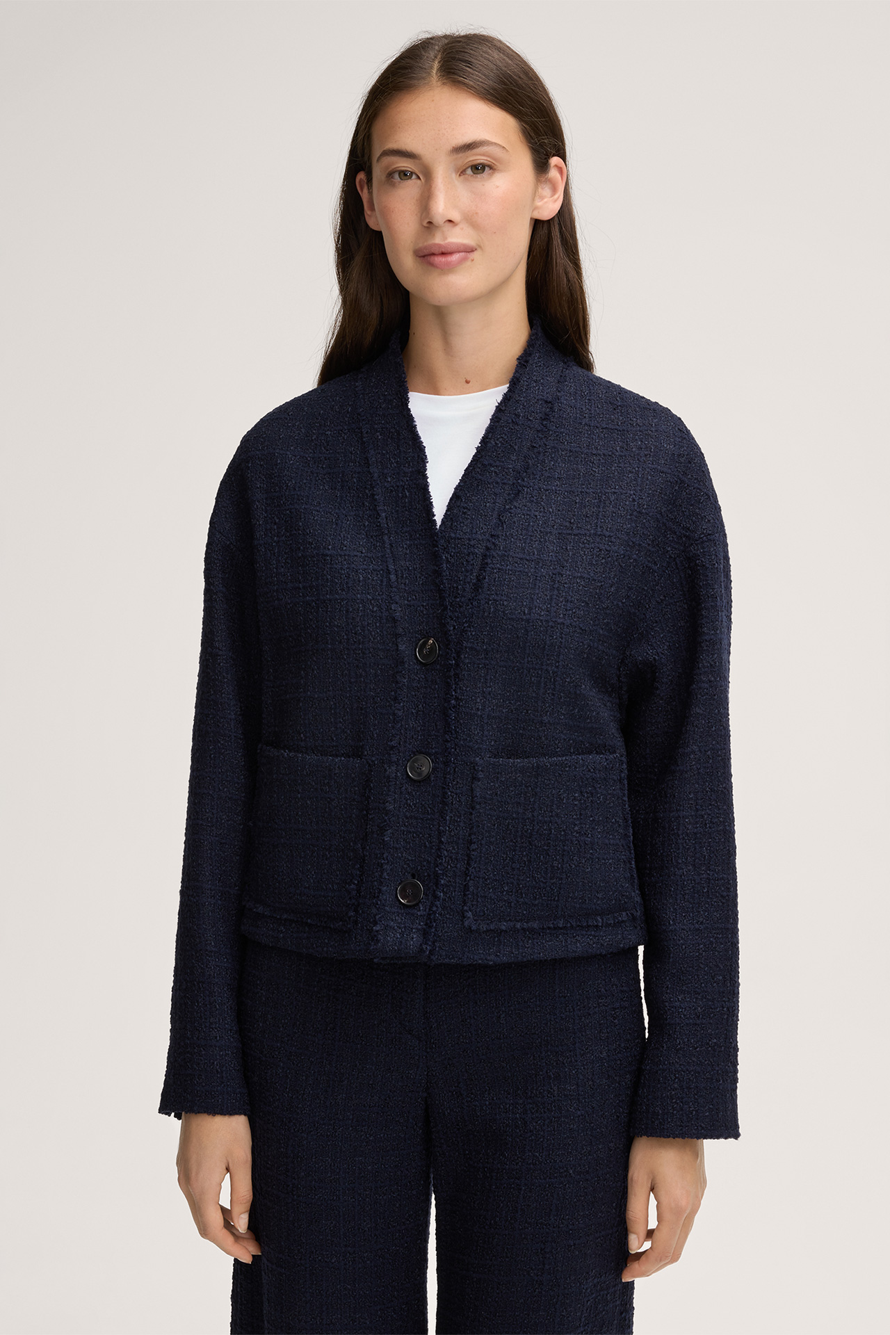 Le blazer court en tweed de laine mélangée stretch est un modèle stylé parfait pour remettre différents looks au goût du jour. Son design est rehaussé d’un col châle, de boutons et de poches plaquées stylées. Les épaules abaissées assurent une finition confortable.