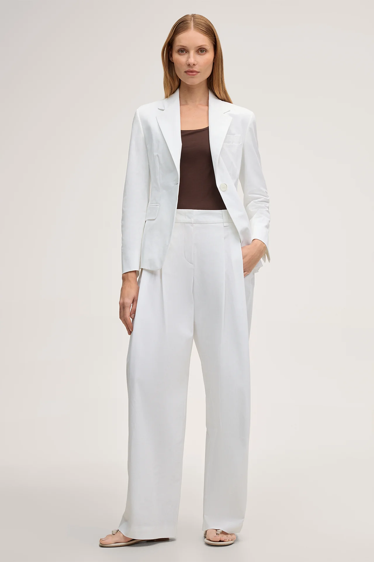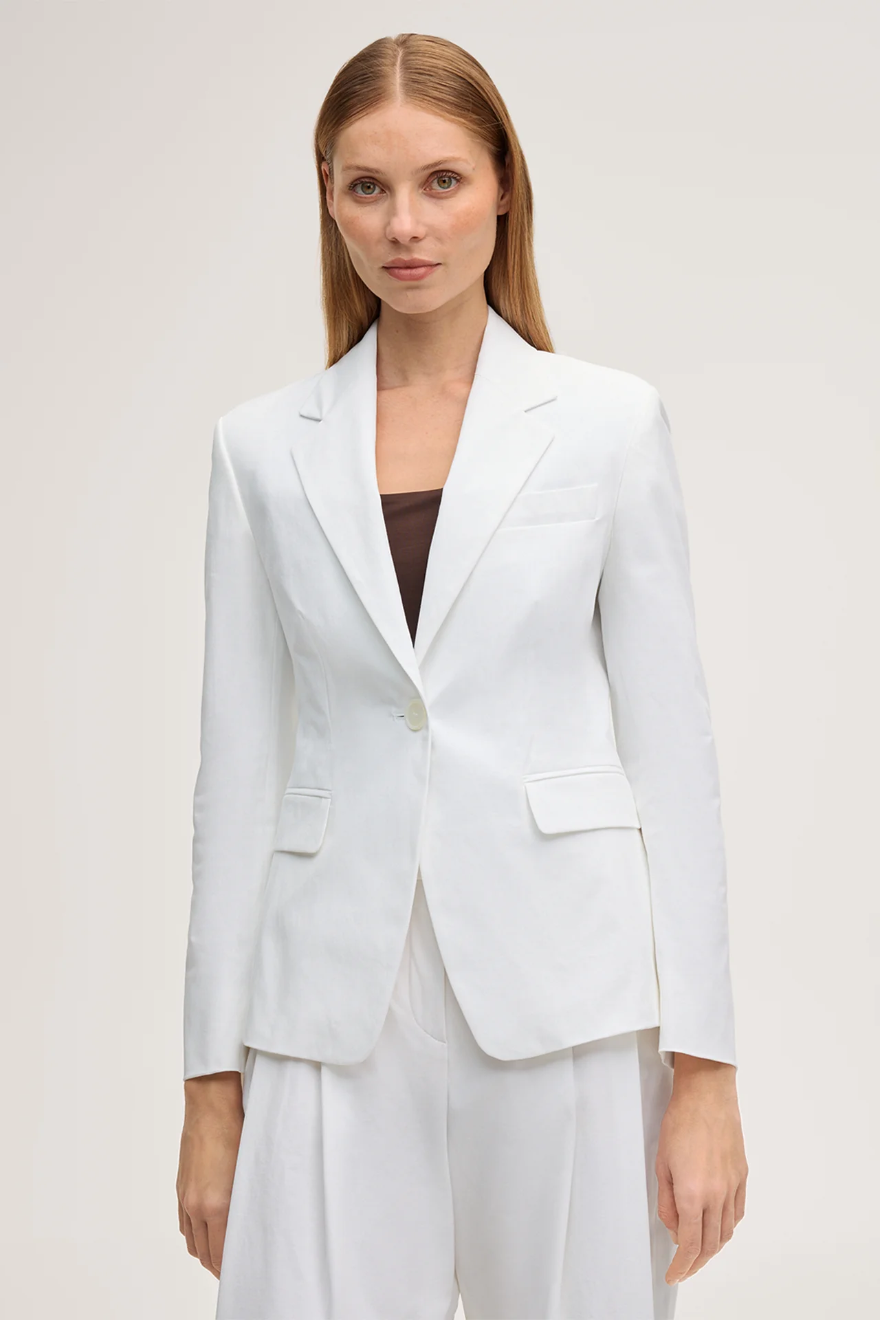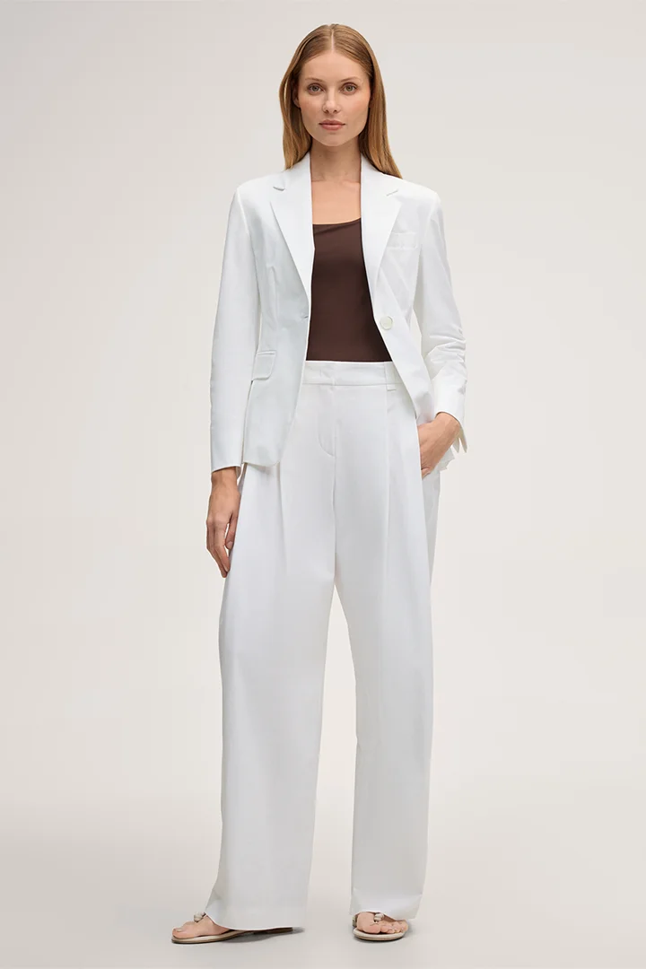 Blazer en gabardine de coton stretch, blanc