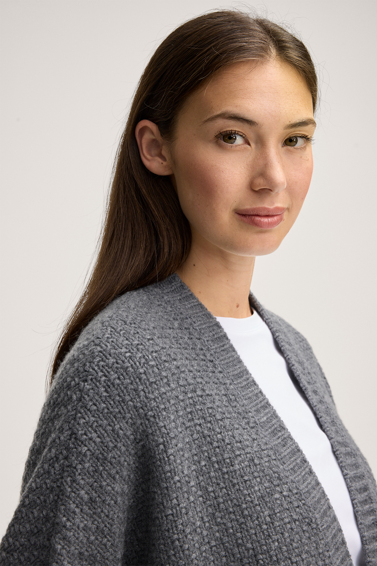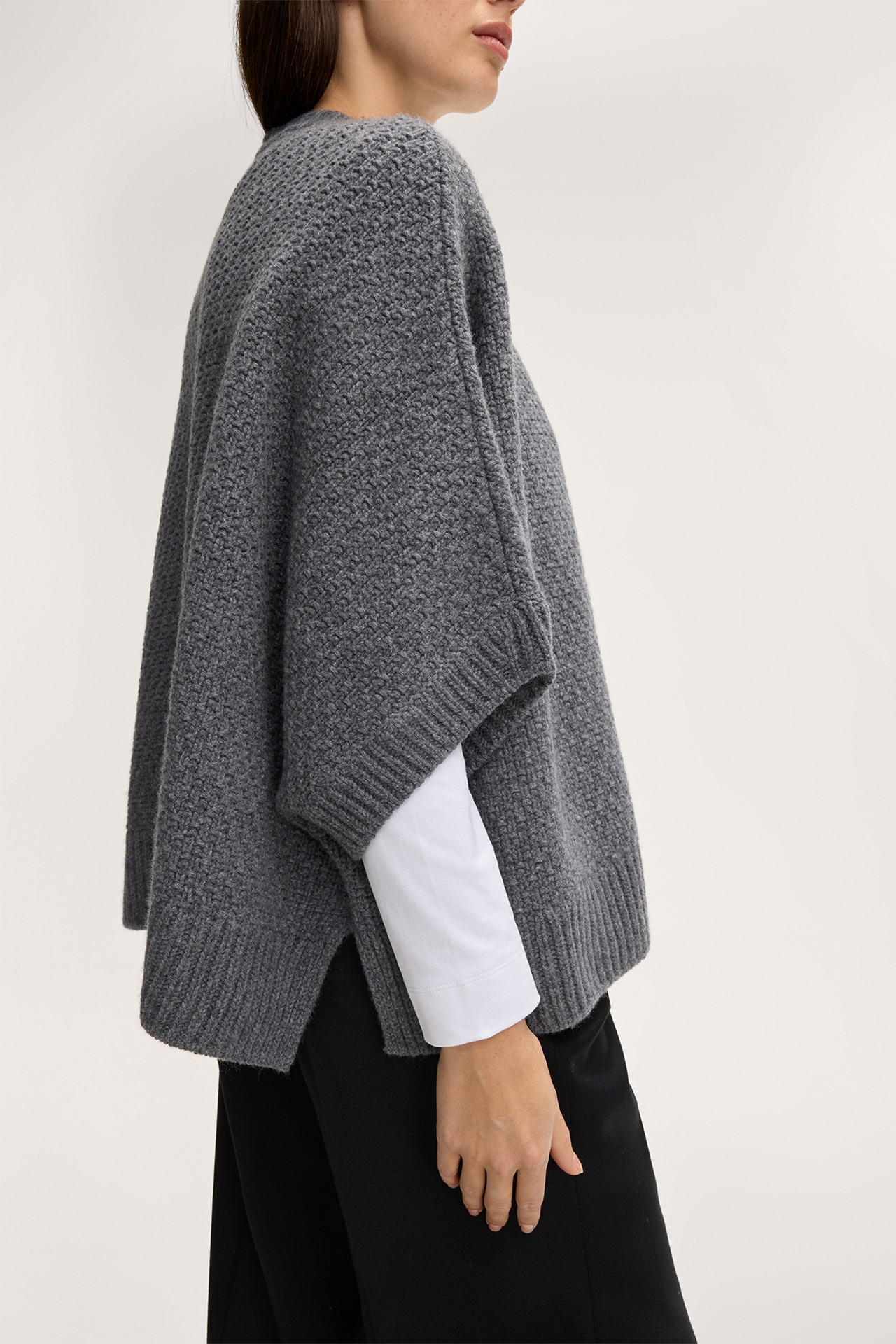 Dotée d’une coupe ouverte à col châle avec des manches raccourcies modernes, cette cape est un modèle polyvalent, idéal pour les superpositions à la mi-saison. Le pur cachemire offre un pur confort. La finition structurée est complétée par des détails en maille côtelée.