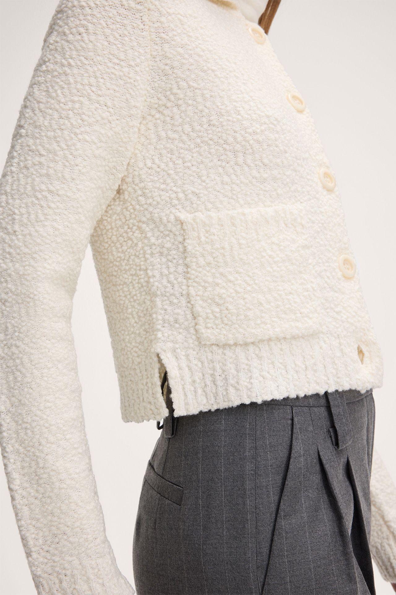 ProducteurCardigan en tweed de laine vierge mélangée avec col de chemise, en écru