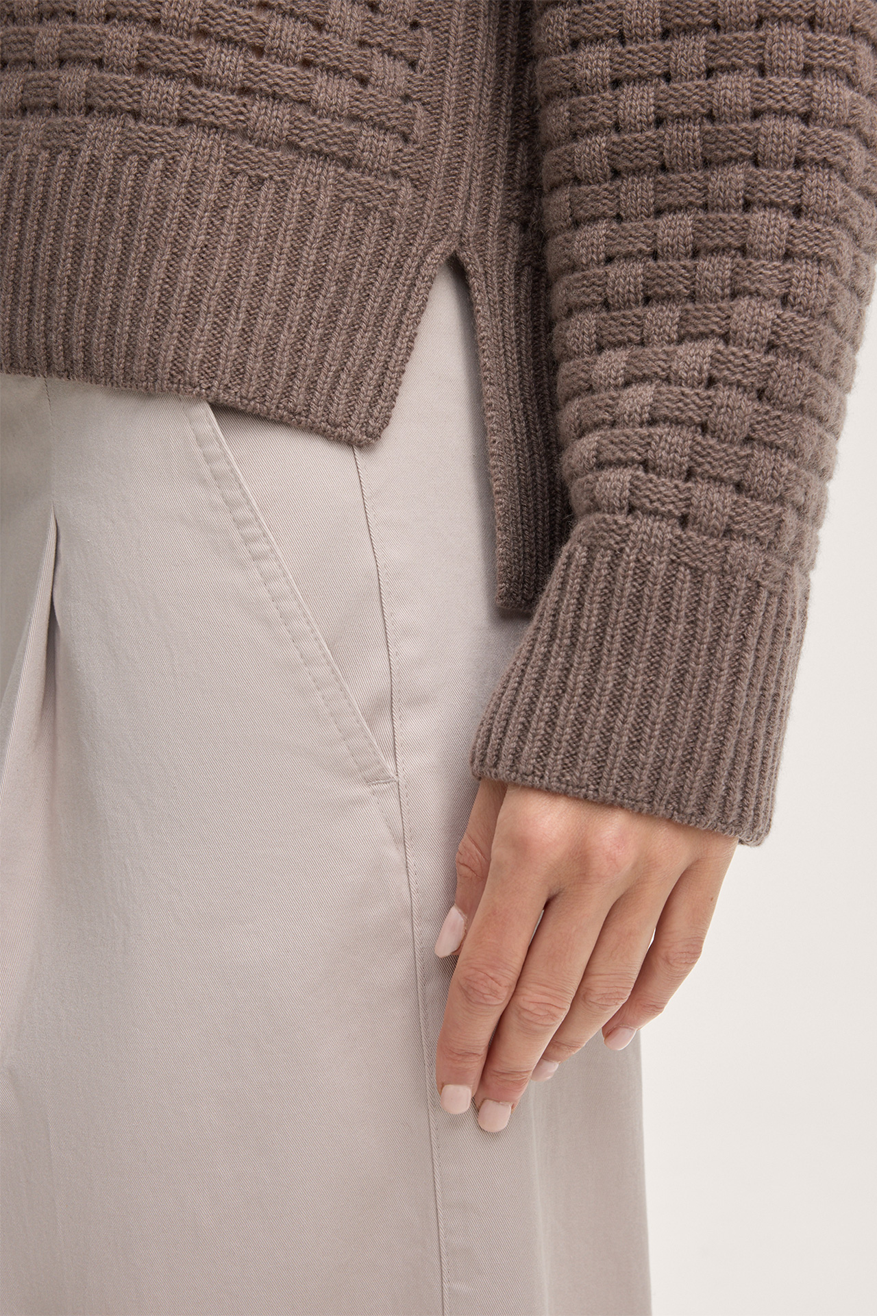 Ce pull-over monochrome en tricot de pur cachemire est un modèle polyvalent, idéal pour créer des looks variés. Le motif tissé moderne et les fines bordures côtelées apportent une touche raffinée. L’encolure arrondie complète harmonieusement son design. De courtes fentes latérales viennent parfaire son design avec style.