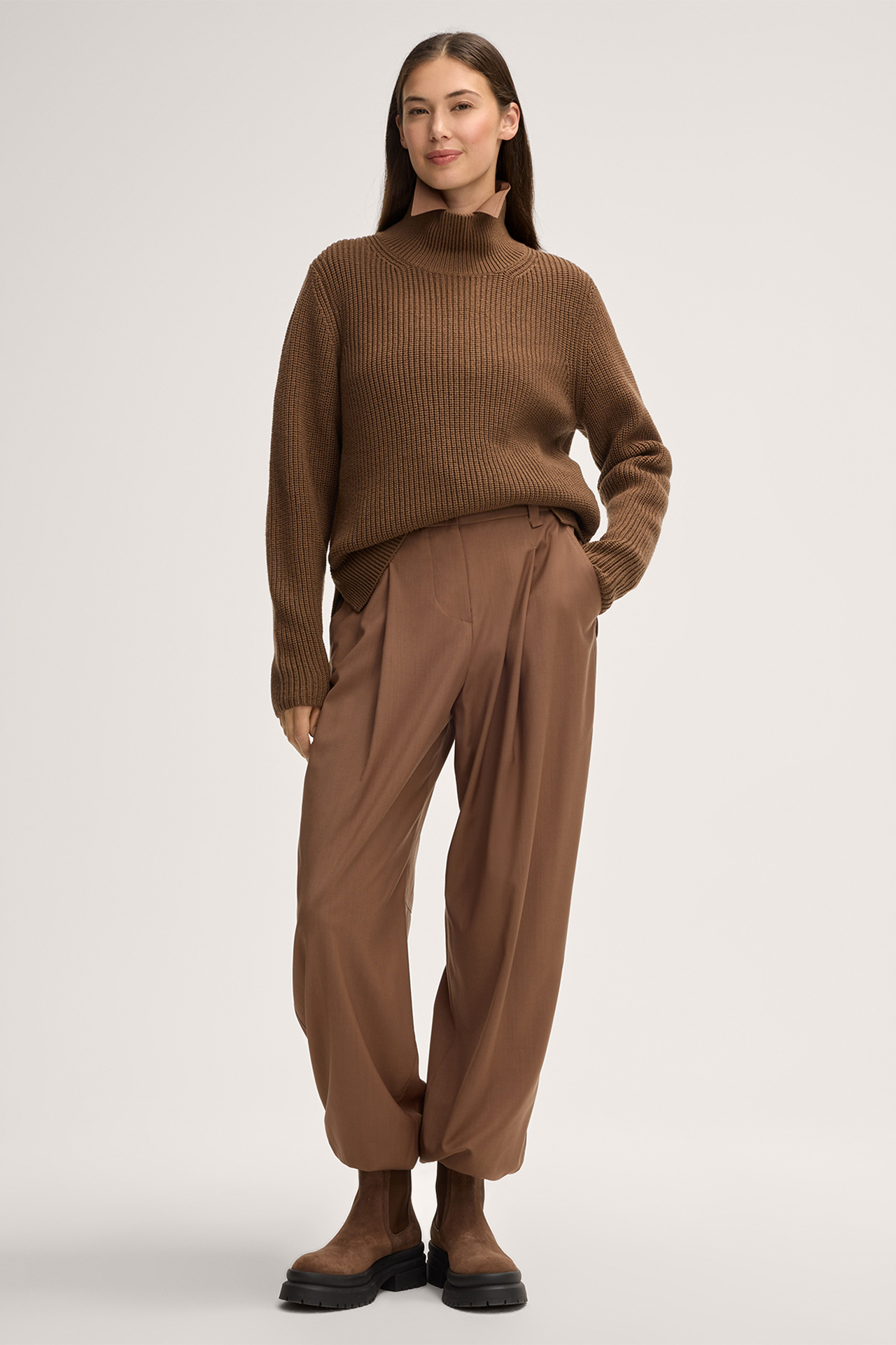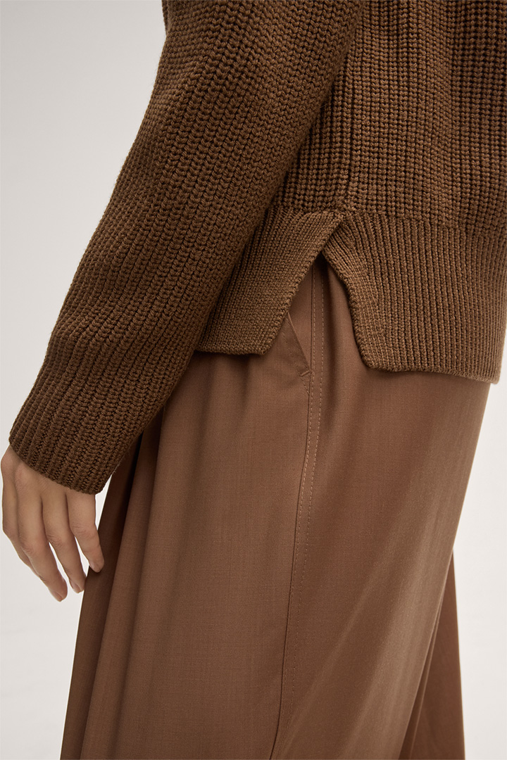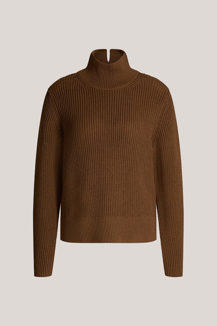 Pull-over en tricot de laine mérinos à col relevé, en marron