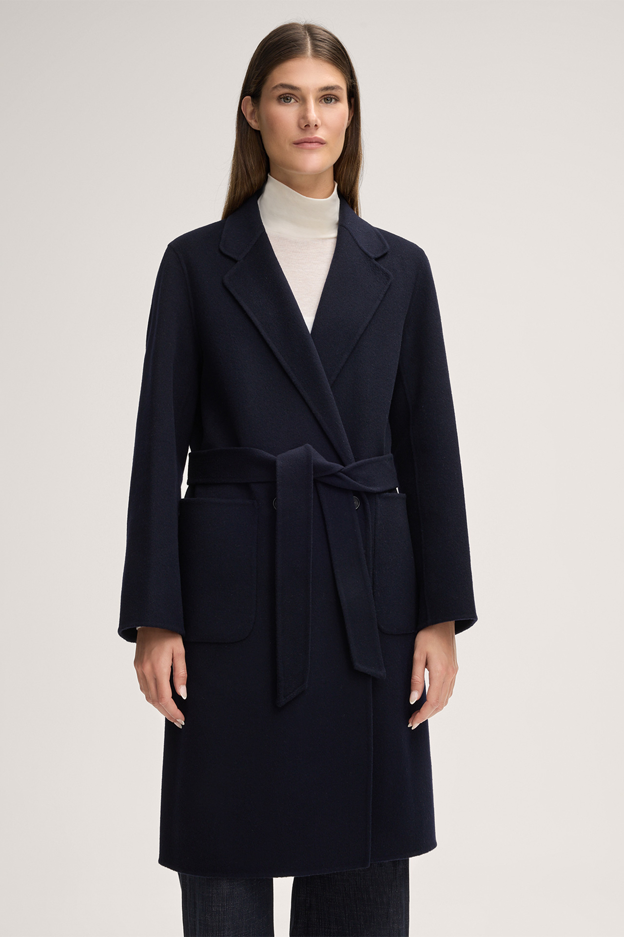 Le tissu double face de pure laine vierge confère un esprit luxueux à ce manteau citadin, auquel la ceinture à nouer monochrome ajoute une touche raffinée. Les poches plaquées et la fente de mouvement au dos assurent un confort optimal. Ce modèle stylé polyvalent, parfait pour compléter tous les looks, est idéal pour les occasions formelles.