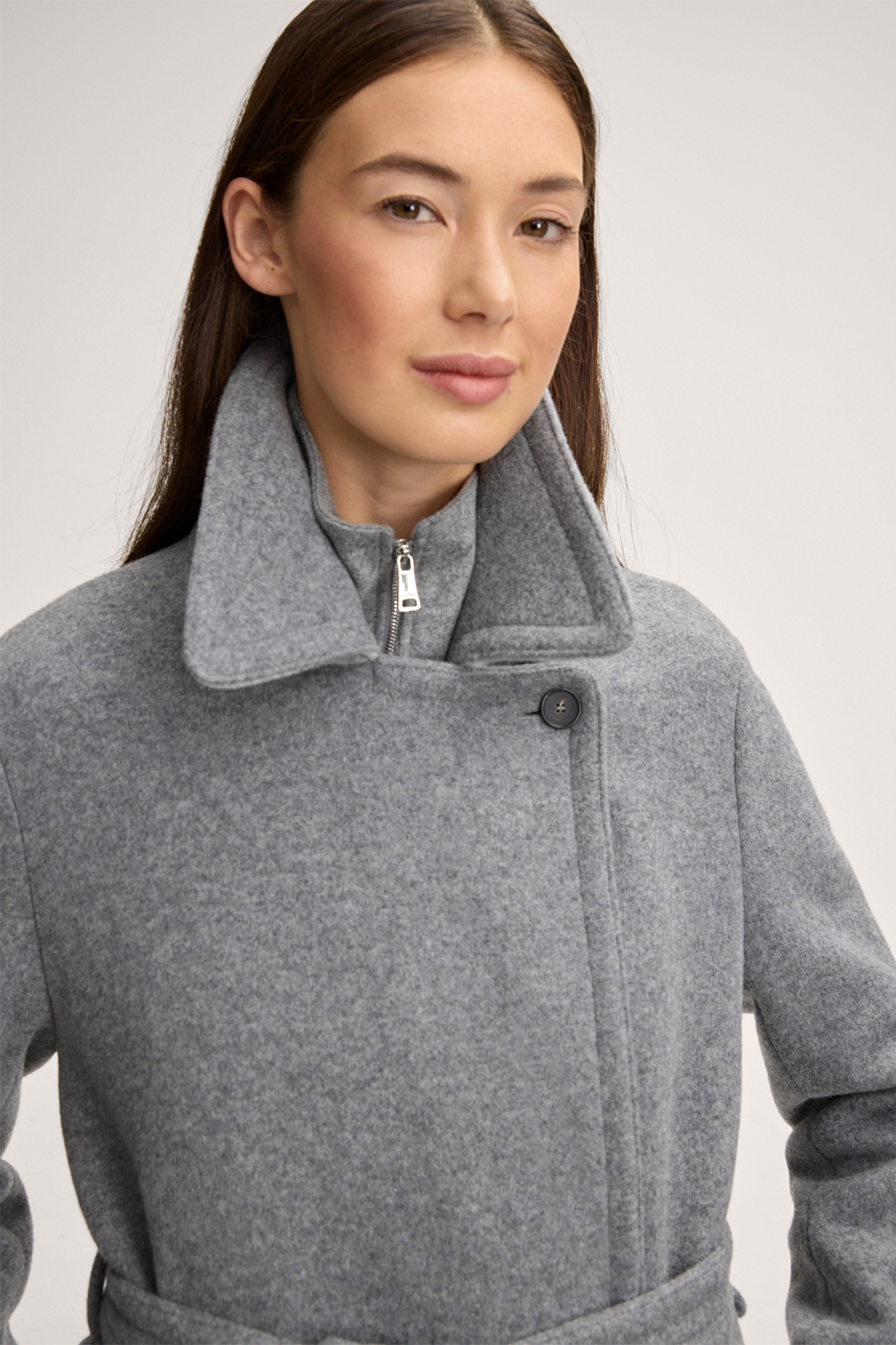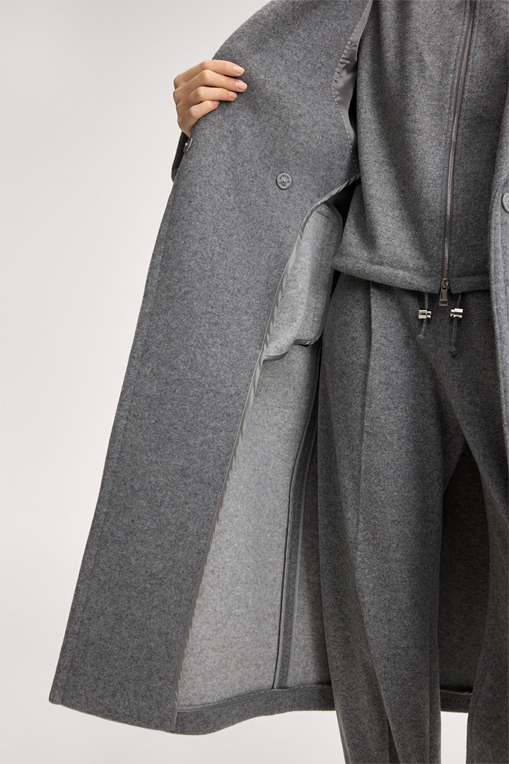 Manteau en jersey double avec ceinture, en gris