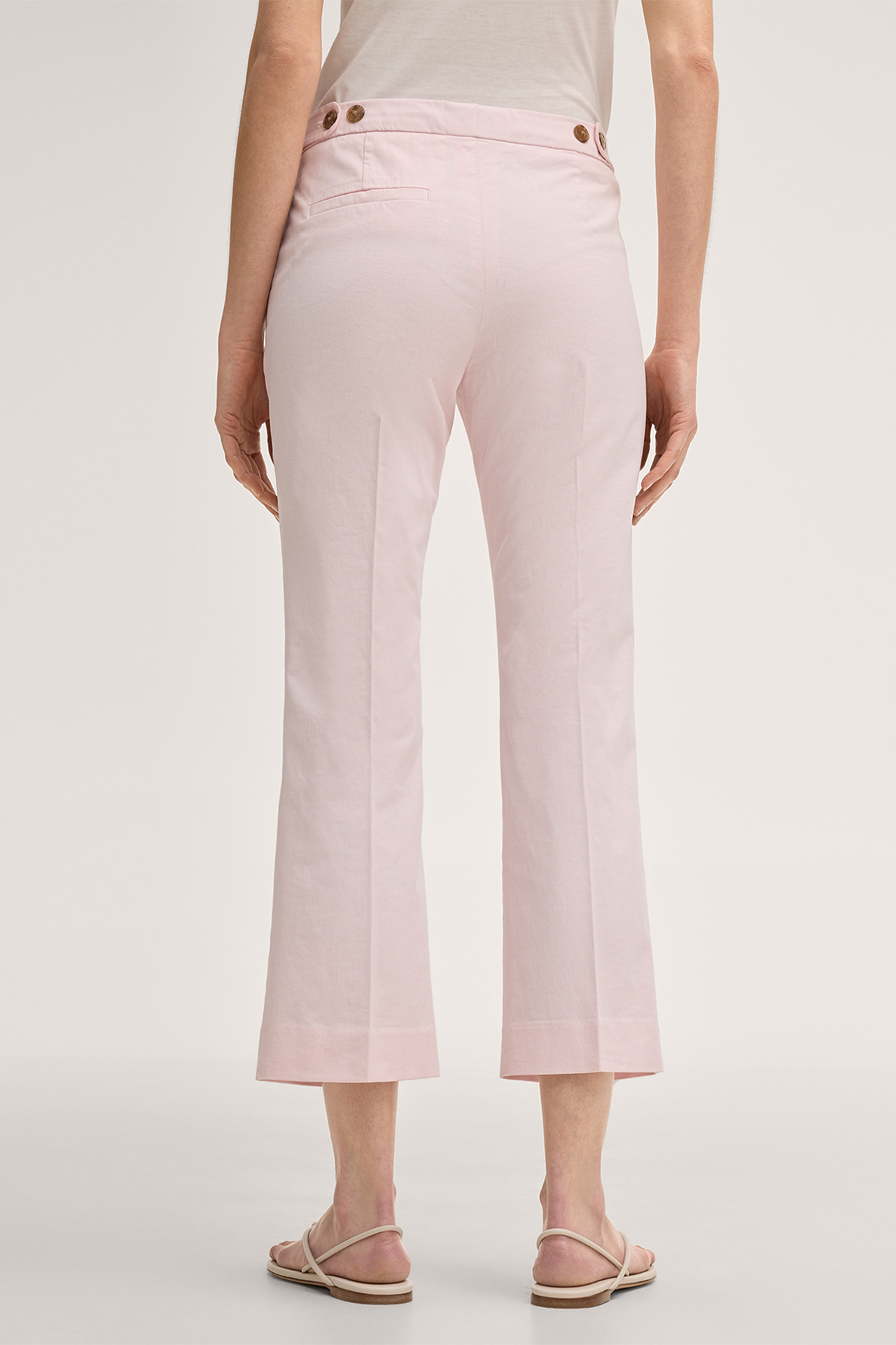 Se mariant parfaitement avec des chemises, des chemisiers et des pulls, ce pantalon chino est un vêtement polyvalent idéal et particulièrement confortable en été grâce à sa matière légère en coton stretch. La taille ajustée, la petite poche à rabat et les plis marqués lui confèrent un look épuré. Les ourlets à double couture complètent harmonieusement ce pantalon 7/8.
