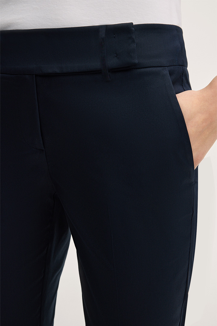 Confectionné en popeline de qualité lisse de coton stretch, ce pantalon bleu marine de la maison windsor. offre un confort optimal. La coupe slim lui confère un look moderne auquel les poches passepoilées factices ajoutent une touche classique. Les plis de repassage et la taille rapportée à passants ajoutent une touche de style que viennent accentuer les revers au bas des jambes. Cette pièce essentielle s’accorde parfaitement avec un chemisier et un blazer pour un look business, ou avec un t-shirt et un cardigan pour un look de loisirs.