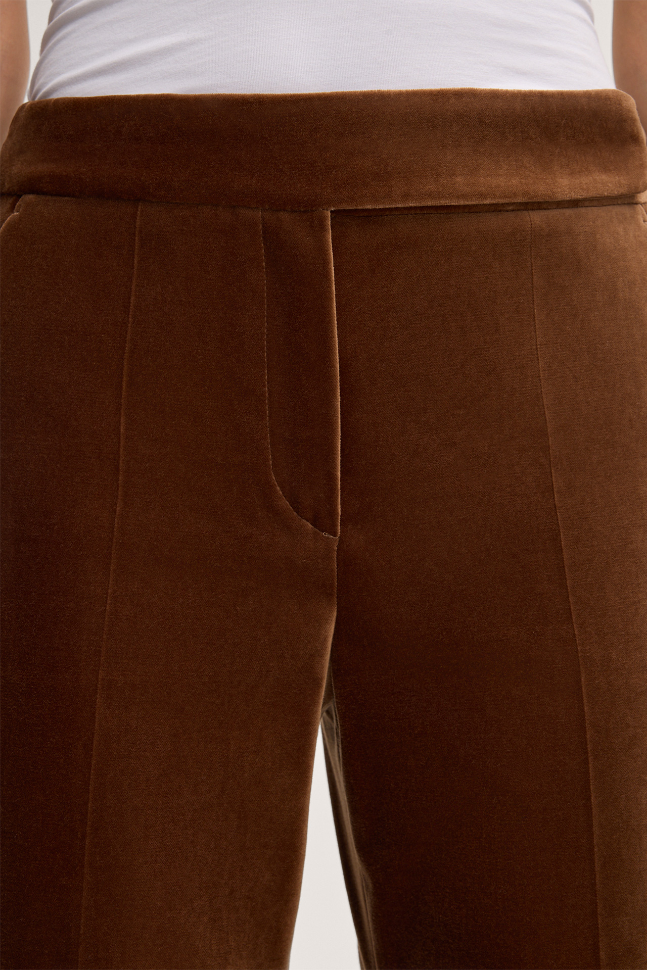 Ce pantalon Marlene en velours de coton stretch séduit tout particulièrement en association avec des chemisiers ou des t-shirts à manches longues. La fermeture par agrafe invisible et zip et les poches arrière boutonnées lui confèrent un style moderne. Des plis de repassage fins soulignent sa silhouette.