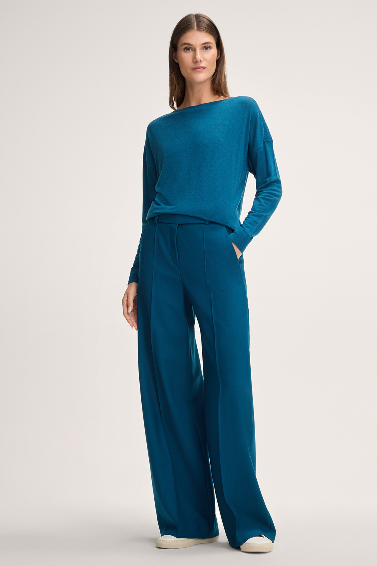 Pantalon Palazzo en twill de laine vierge, en bleu pétrole