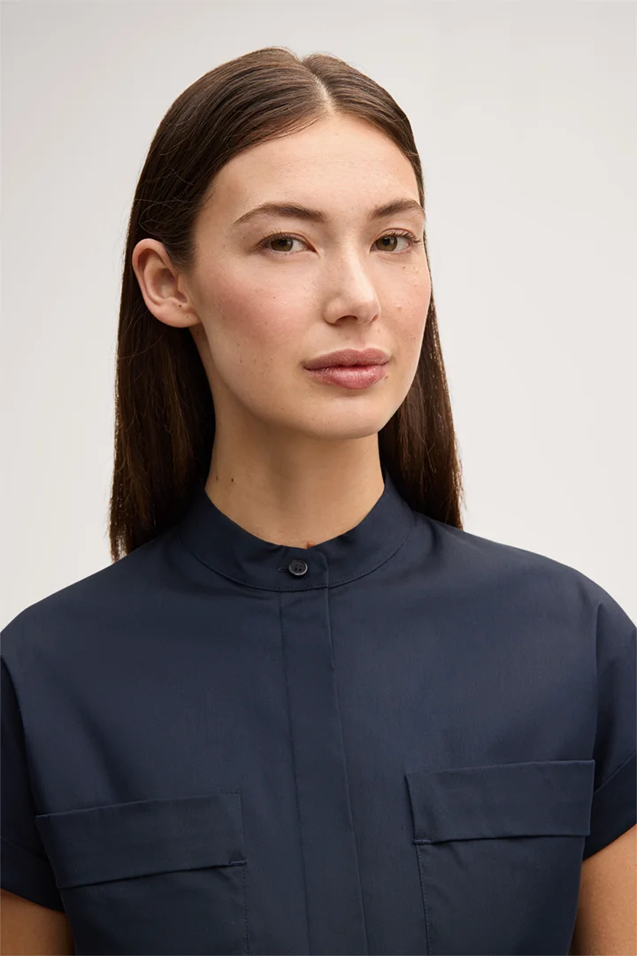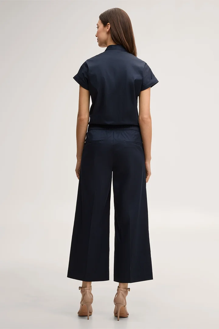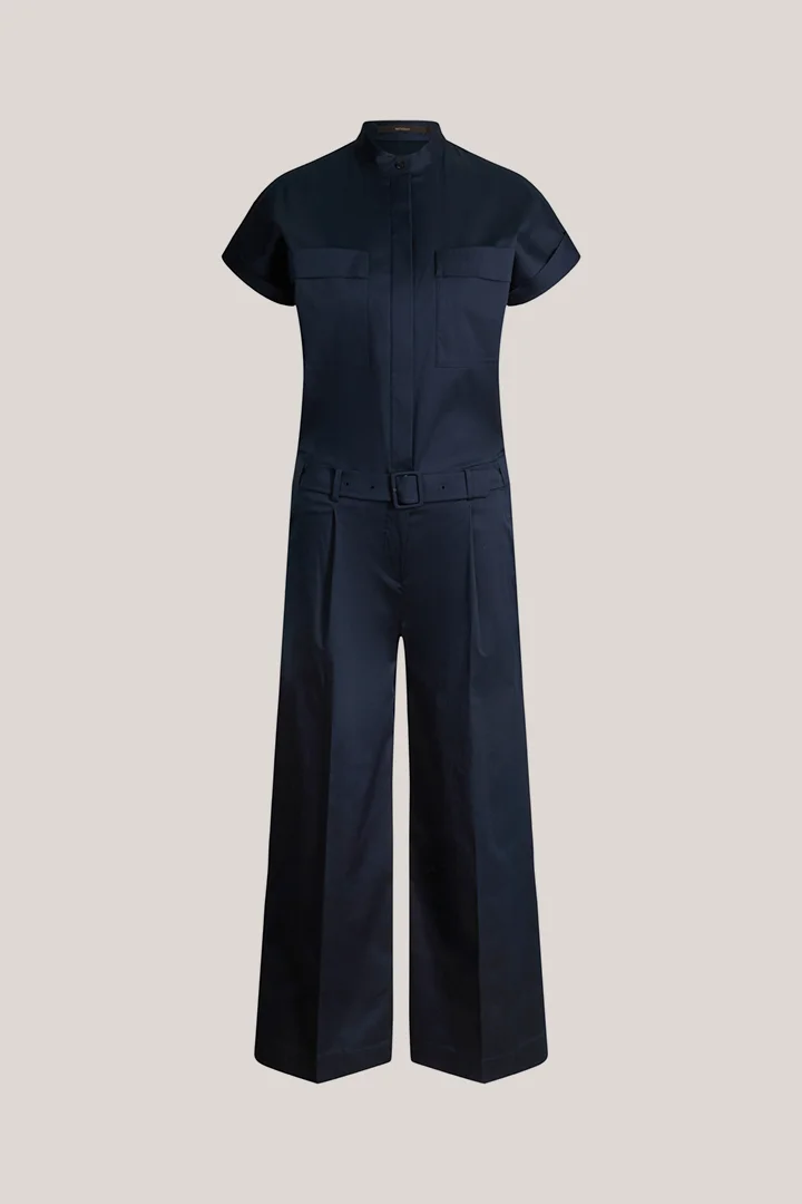 Cette combinaison se distingue par sa fermeture à boutons sur le devant, qui constitue son élément phare. Avec ses manches courtes, son col élégant, ses poches poitrine et sa ceinture cintrée, elle allie des lignes modernes et épurées à une grande fonctionnalité. Elle se porte aussi bien au bureau qu’en temps libre ou lors d’occasions semi-formelles.