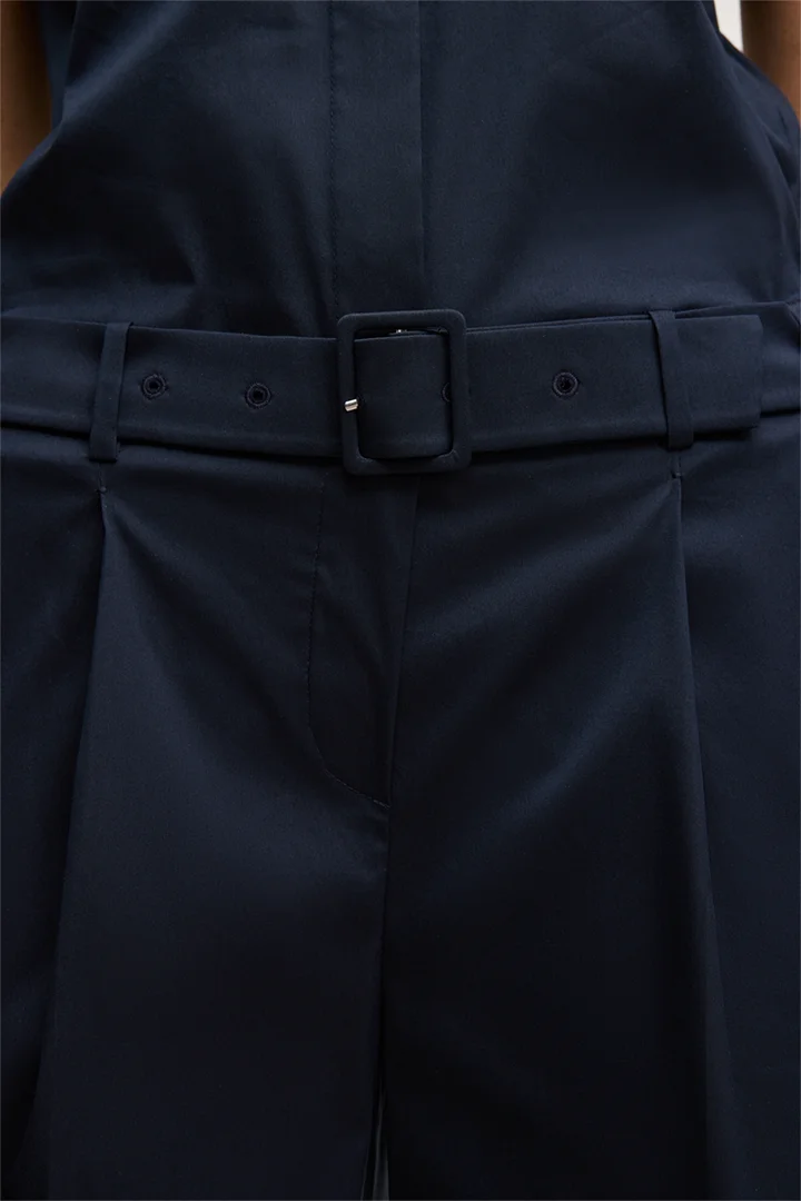 Combinaison en coton stretch à manches courtes et col montant, couleur bleu marine