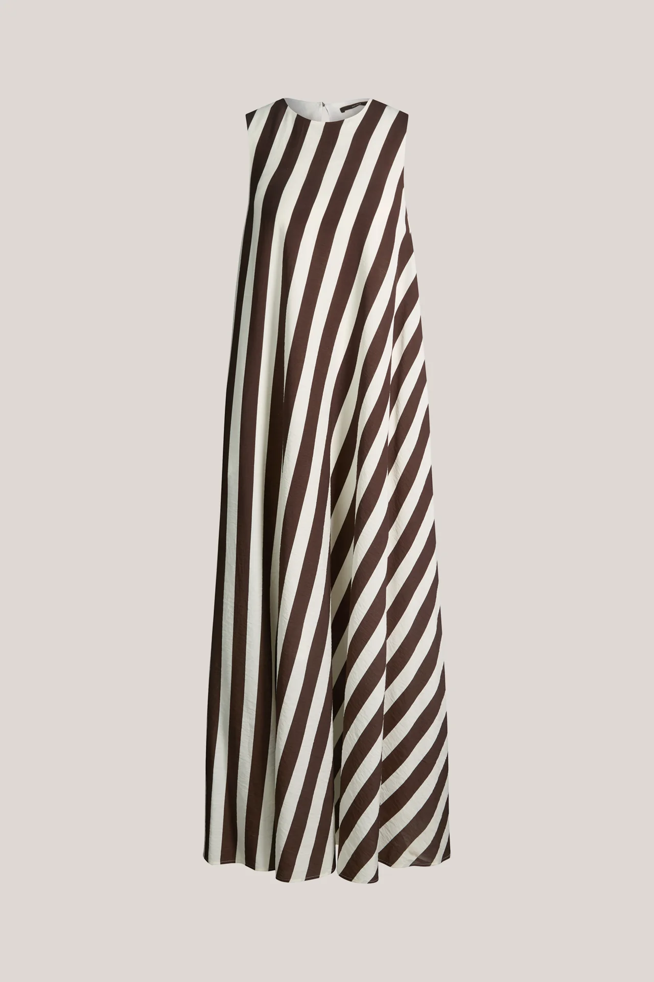Robe longue en mélange viscose-lin, rayée écru et marron foncé