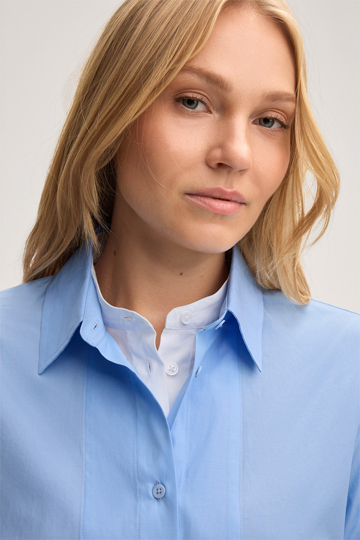 Sophisticated details define the unique style of this feminine shirt-style blouse made from pure cotton poplin. The double-stitched cuffs and button placket lend the look an elegant yet modern feel. The longer hem at the back creates a comfortable finish. An inverted pleat harmoniously rounds off this essential piece, creating an all-rounder for any occasion.