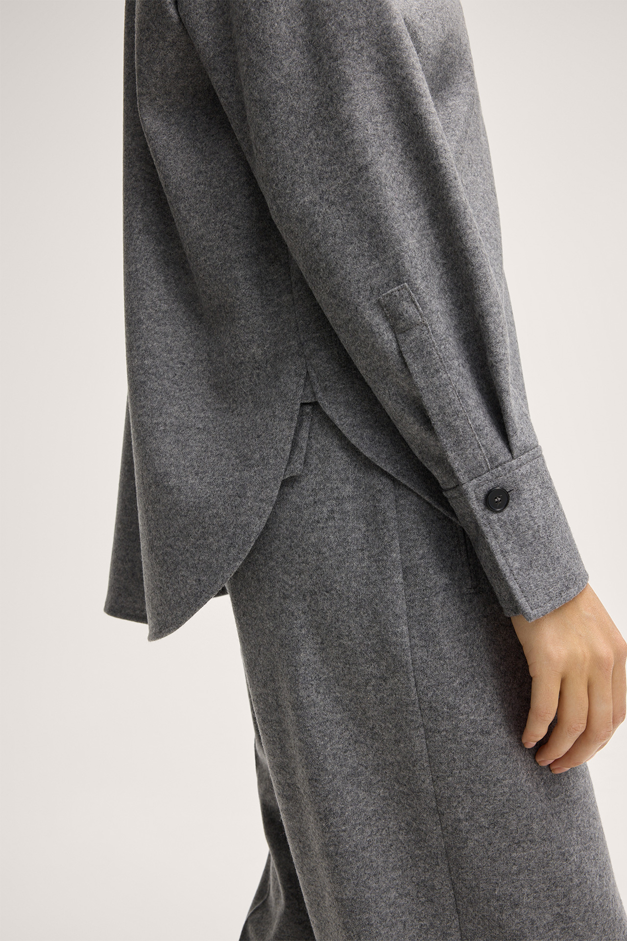 Wool Jersey Shirt-style Blouse in Grey