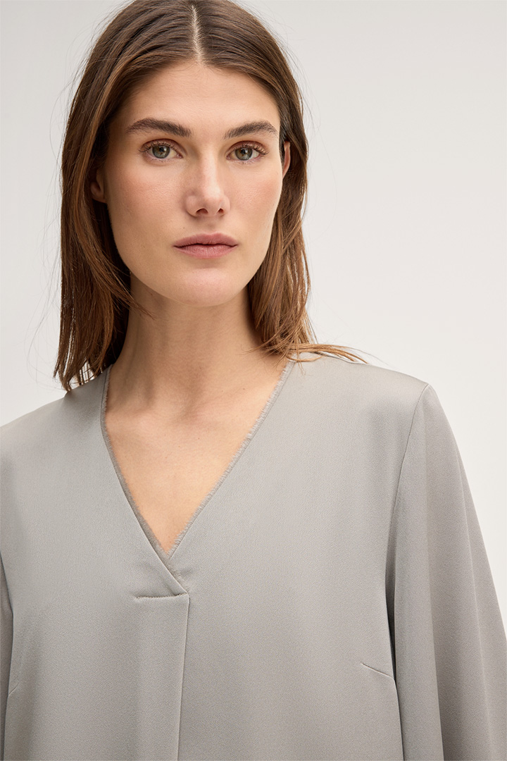 An elegant, feminine and indispensable essential for formal occasions, this crêpe dress is out to impress with its elegant sheen. Fine fringe details on the V-neck and sleeves reflect the modern twist, while concealed inseam pockets add a classic finish. A front pleat rounds off this flattering design. The zip fastening at the back ensures next-level comfort.