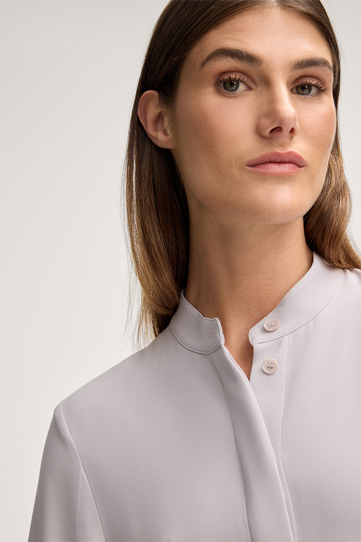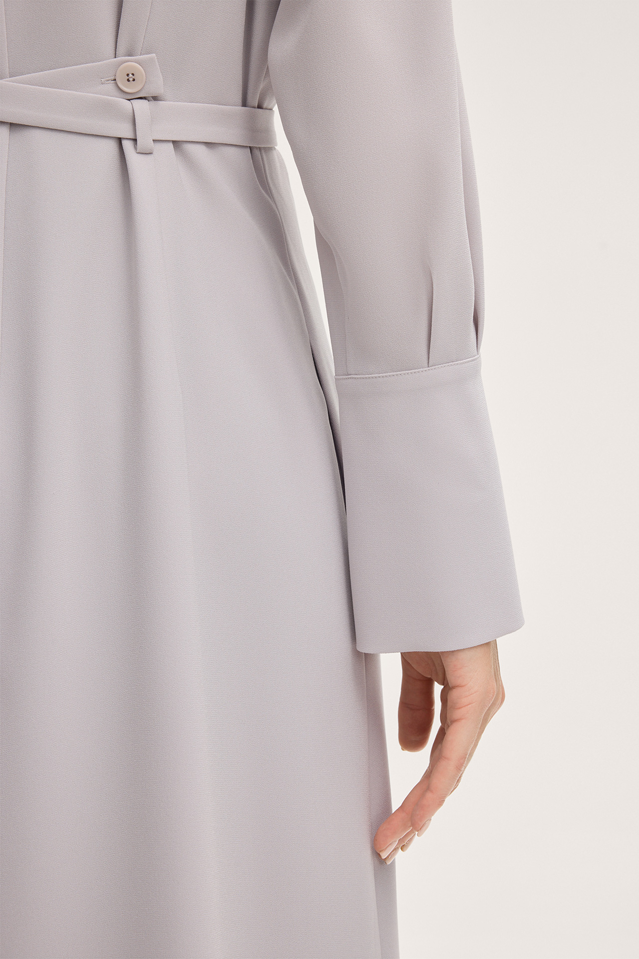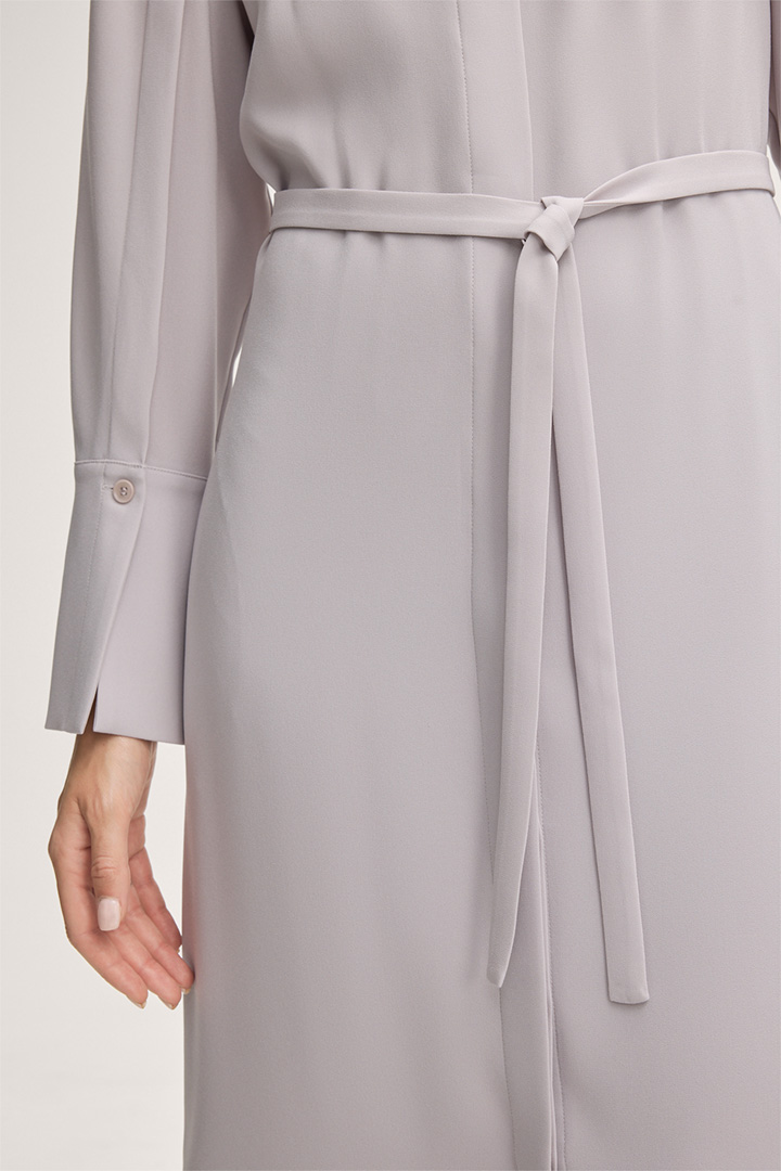 Crêpe Shirt-style Dress in Midi Length in Stone Grey