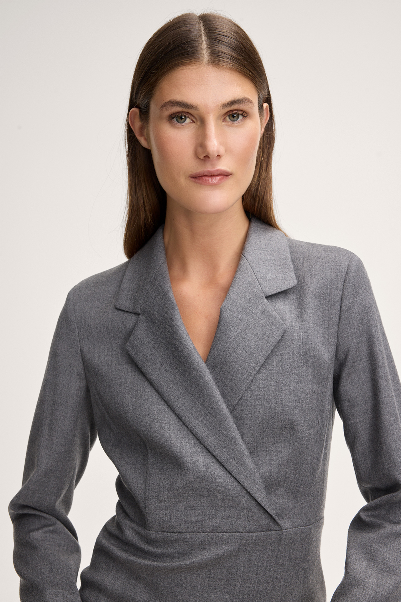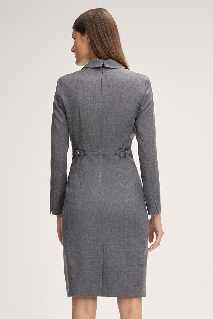 This dress ina blazer design with lapel collar and slits scores highly as a stylish piece – complemented by the fine flannel quality in stretchy virgin wool. Adjustable waist tabs and a seam-concealed zip round off the style to perfection.