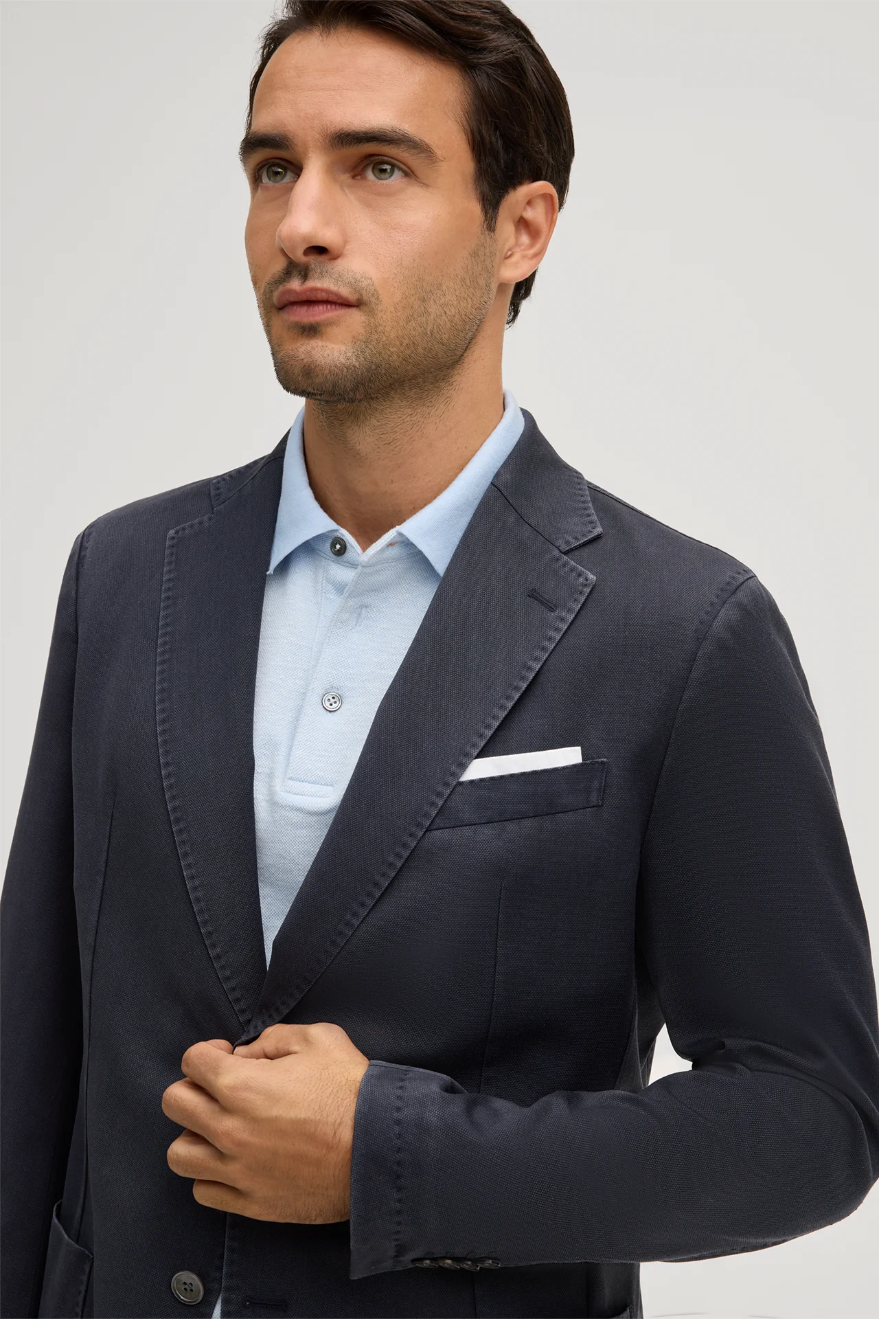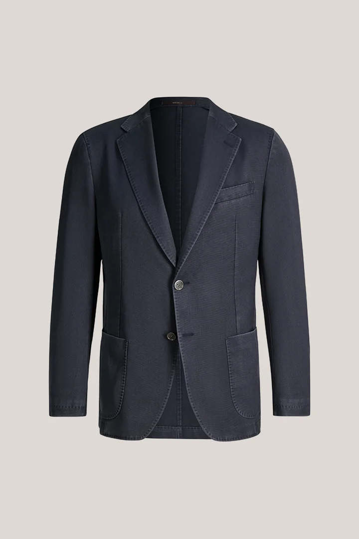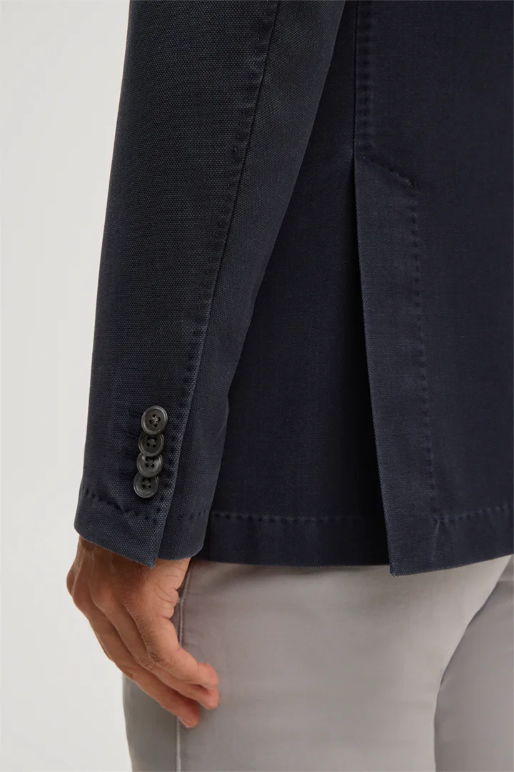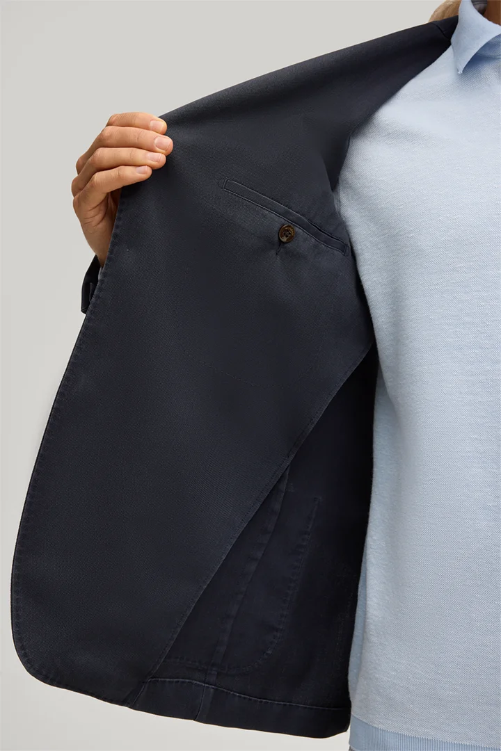 Made from pure virgin wool in a frosted wool quality, the Manolo jacket is a versatile essential for sophisticated looks. Patch pockets and double back vents point out its casual character, while the lapel collar and elegant AMF-stitching define traditional tailoring. The jacket fastens with two buttons.