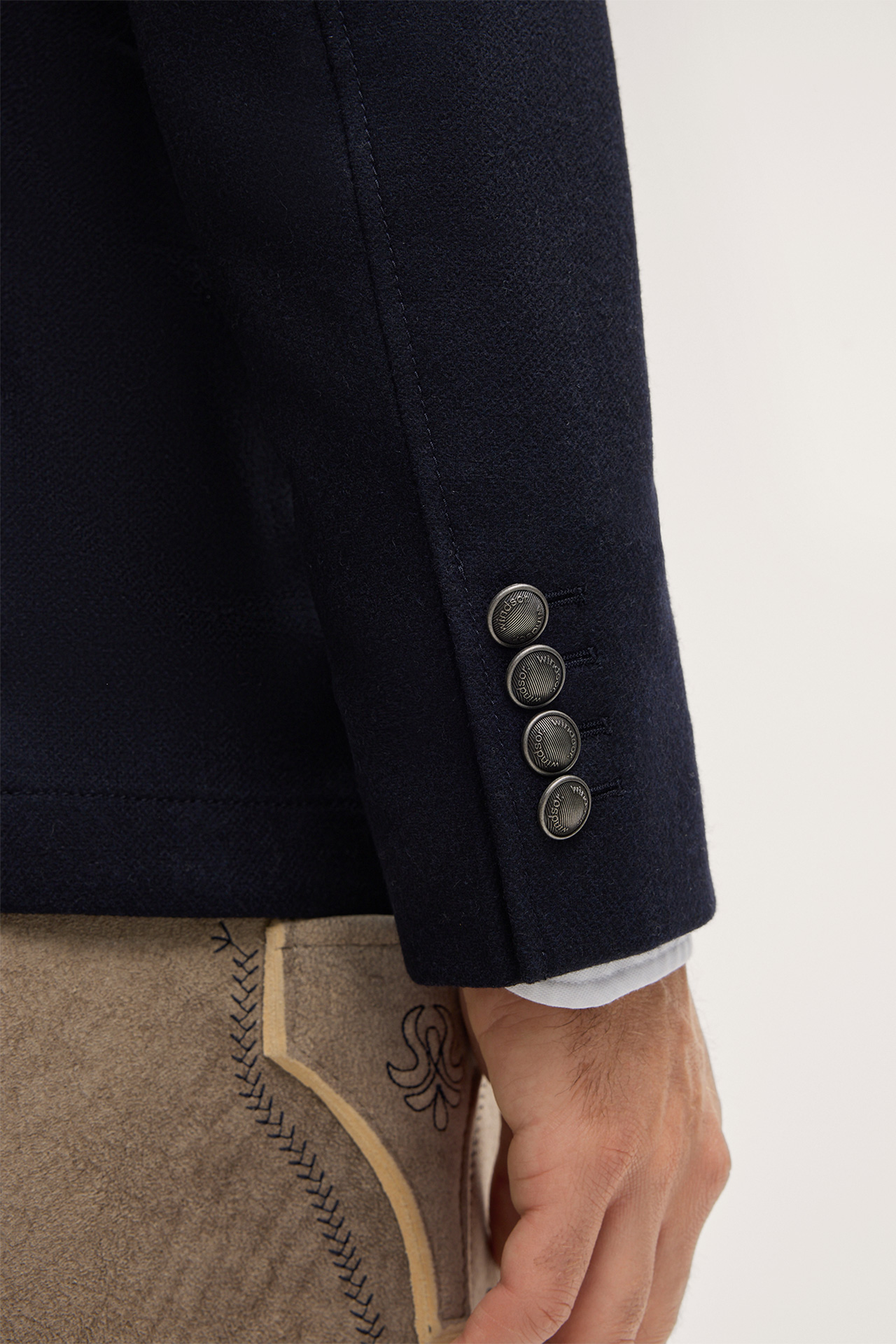 The Schwabing traditional costume jacket is out to impress in this comfy wool blend with a cashmere finish and flowing partial lining. The metallic logo buttons, stand-up collar and piped pockets create highlight accents, while slits in duo design ensure a comfort upgrade. A smart look in the off-season too - pair with chinos or jeans.