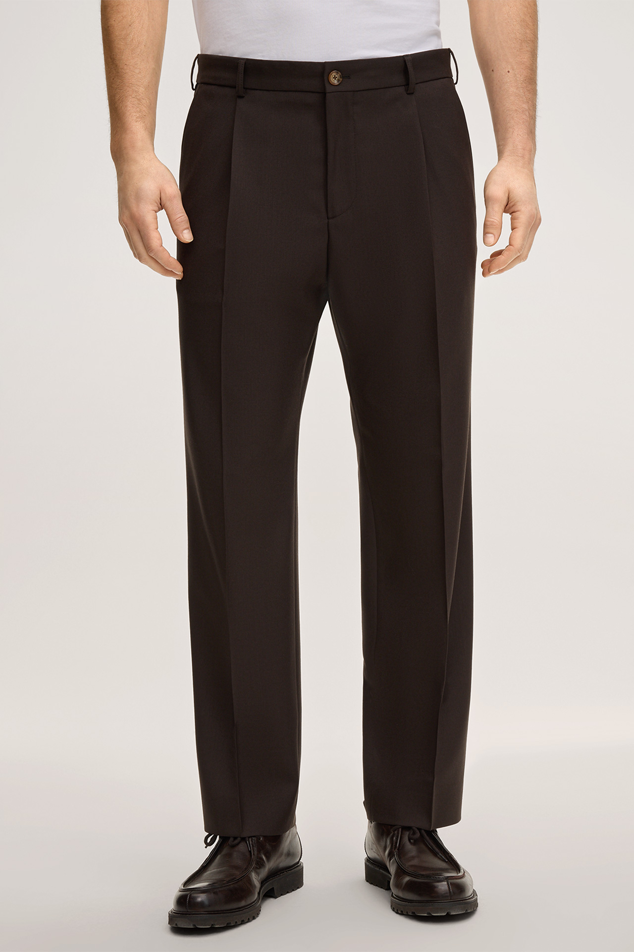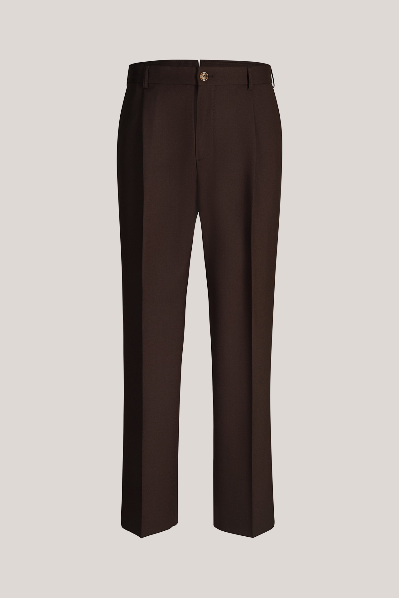 Francos Modular Virgin Wool Trousers with Waist Pleats in Brown