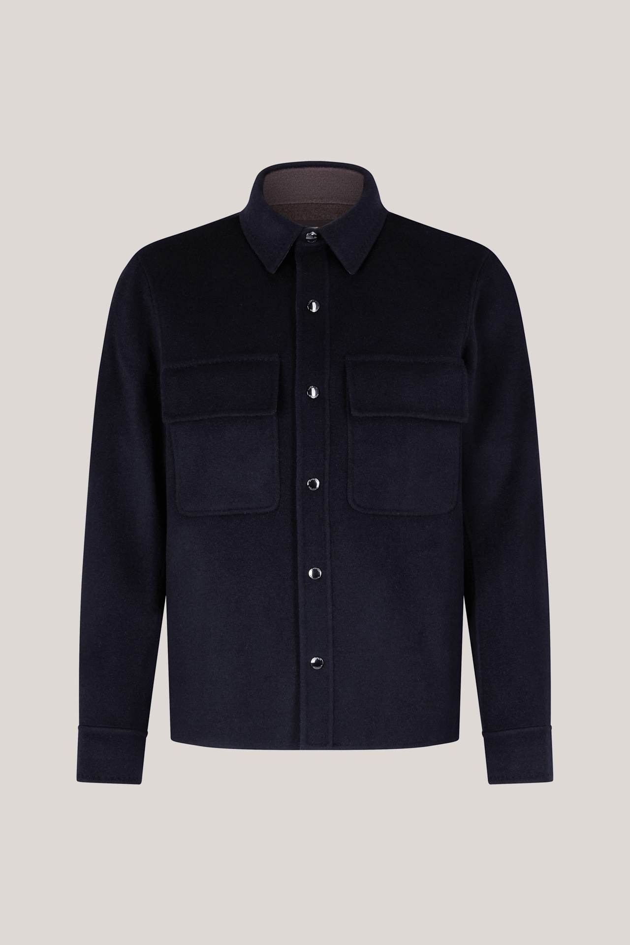 Pure wool in double-face quality lends the Giosue shirt jacket a stylish look, complemented by the classic collar and full-length press stud placket. Patch flap pockets lend modern accents. Cuffed sleeves add a harmonious finish to the style.