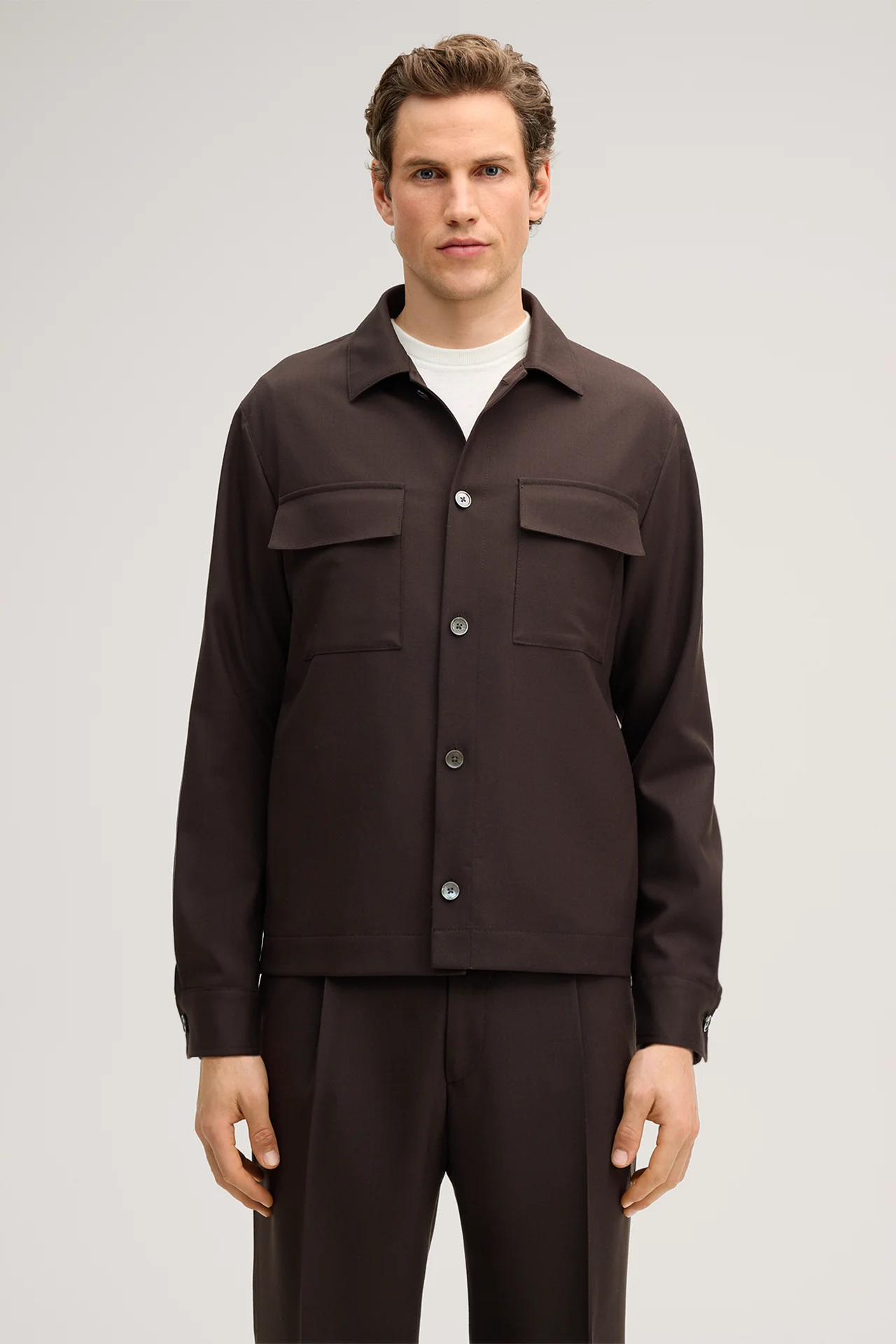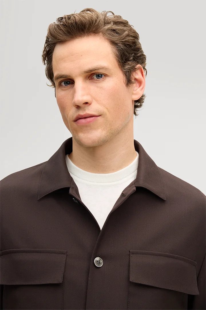 Lavoro Modular Virgin Wool Overshirt in Brown