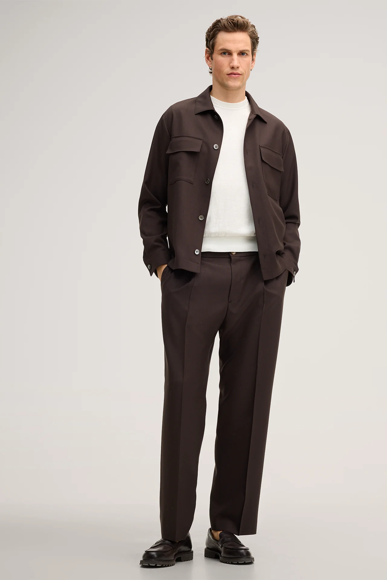 The Lavoro overshirt in pure virgin wool quality, adds a touch of comfort to any outfit - perfect for pairing with a T-shirt or wearing over a lightweight knitted sweater. The Kent collar and full-length button placket, complemented by adjustable cuffs, ensure a classic look. Patch flap pockets add a harmonious accent.